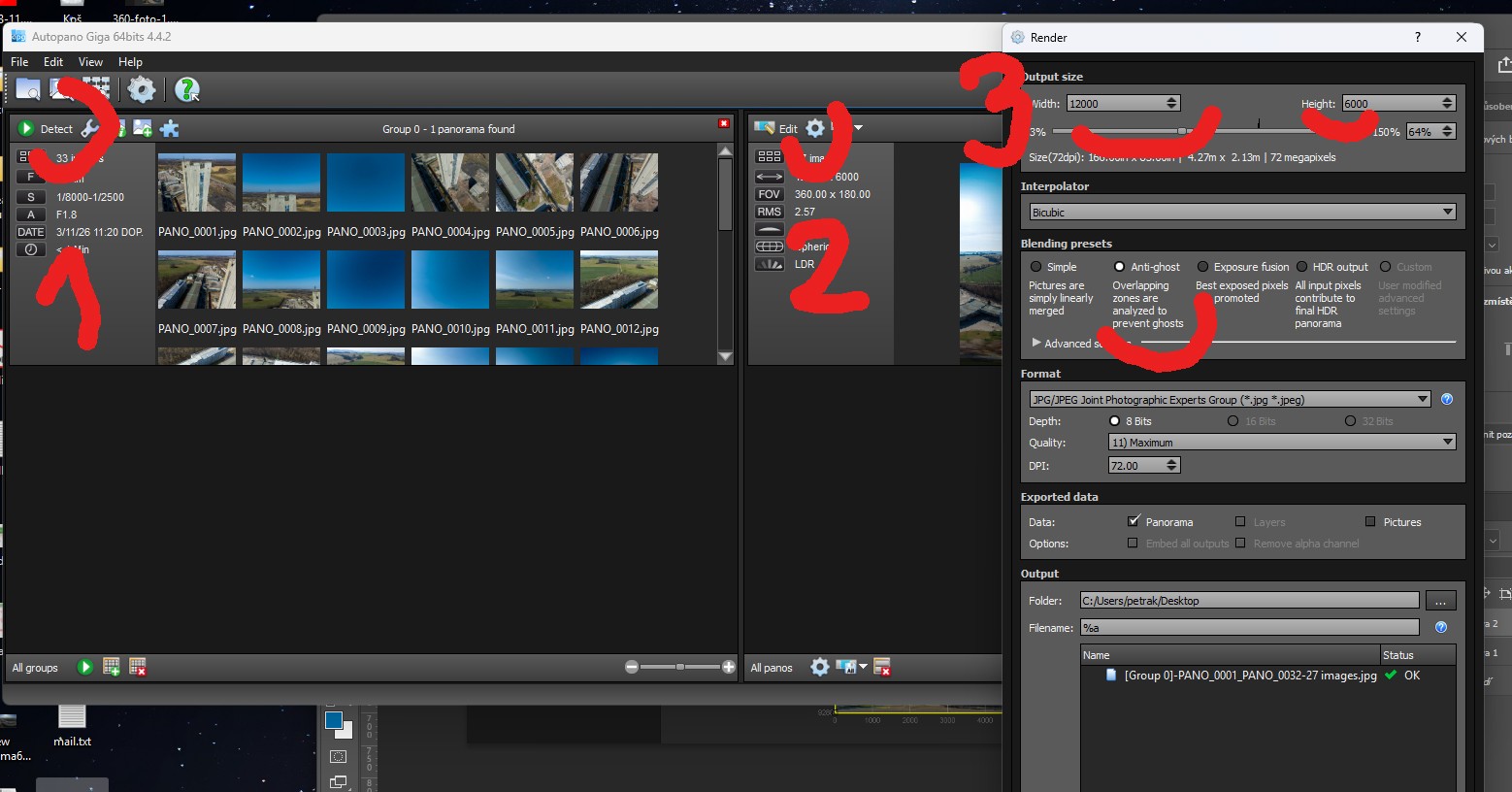vyexportují do JPG a následně spojí v AutoPano Giga,