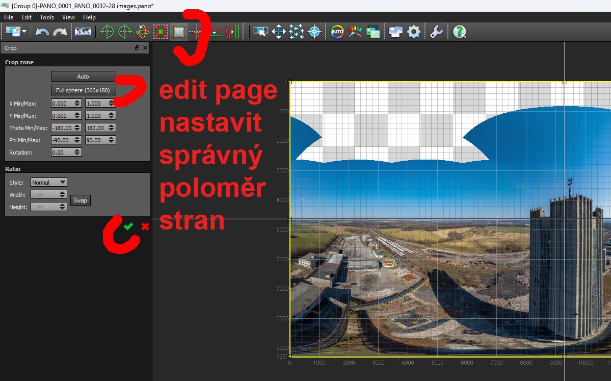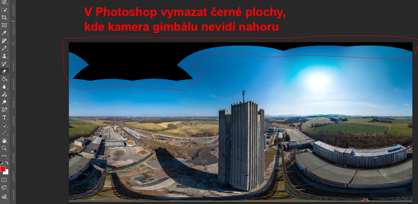spojení 360° fotek z dronu DJI Mini v Photoshop nebo Lightroom Classic nejde,