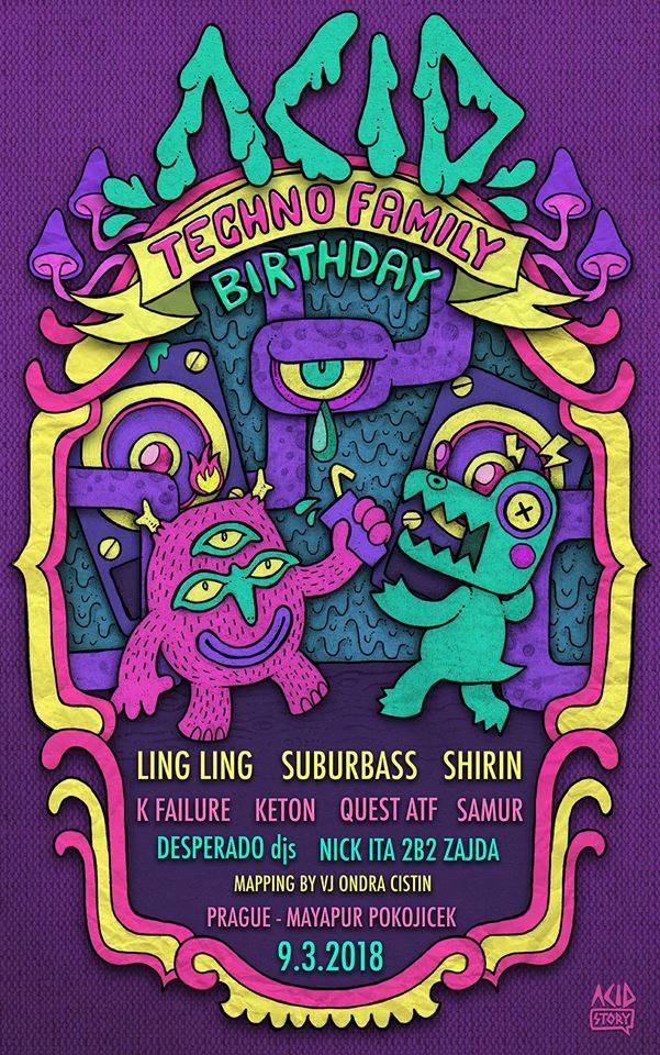 !! WE ARE FAMILY # WE ARE ACID FAMILY !! LING LING live / Obscure, AT SUBURBASS live / Le Diable au Corps , FR SHIRIN live / Multiplan Colectiv , AT KE TON live / Multiplan Kolektiv , AT SOUTH TRIBE live / erredeka ,ES SAMUR live / Mlotek soundsystem , CZ MEJRA NSK QUEST ATF / Acid Techno Family , CZ NICK ITA b2b ZAJDA / Granko Sound Makers , CZ DESPERADO DJs 3D MAPPING by ONDREJ CISTIN Noise Control Audio by Mayapur sound system.