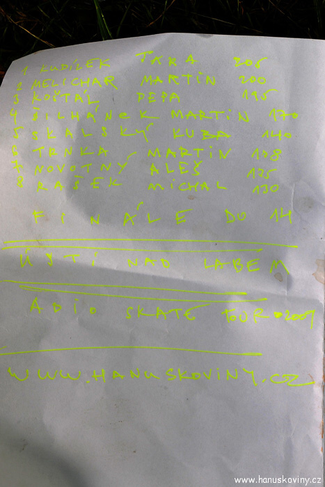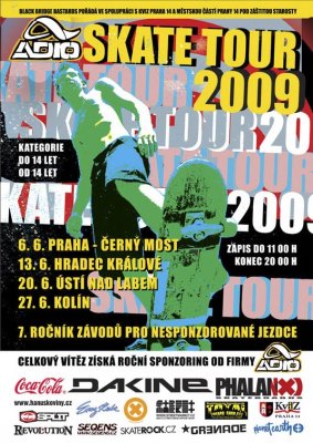 Další skate závody pro nesponzorované doprovázely velkou účast. Závodil jsem ve své kategorii do 14ti let spolu s devatenácti skatery. Skončil jsem na patnáctém místě. O AKCI: Adio Skate Tour 2009 - Ústí nad Labem Sobota, červen 20 2009, 11:00 - 20:00. Již po sedmé je tu sérka pro nesponzorované jezdce a krotitele prken - Adio Adio Skate Tour 2009.
