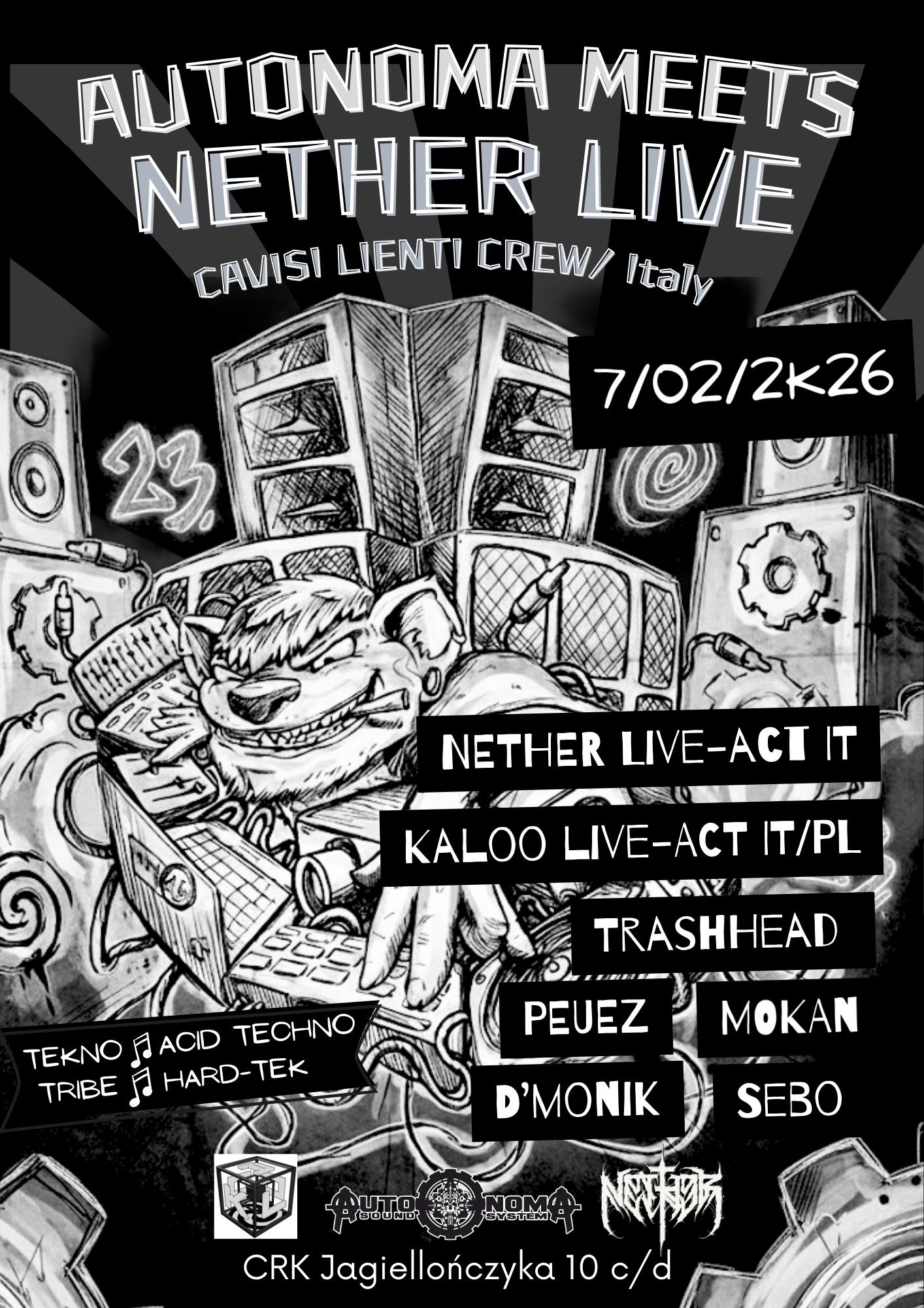 Niezmiernie cieszy nas fakt, że po raz kolejny za sterami ugościmy Kaloo (Tribal Express). To już niemal tradycja, że włoska szkoła tribe'u znajduje u nas swój drugi dom, a energia, którą ten gość dostarcza, zawsze zostaje w nogach na długo. Ale to nie jedyna petarda tego wieczoru! Tej nocy swój chrzest na scenie AutonomA przejdą TrashHead oraz PEUEZ.
