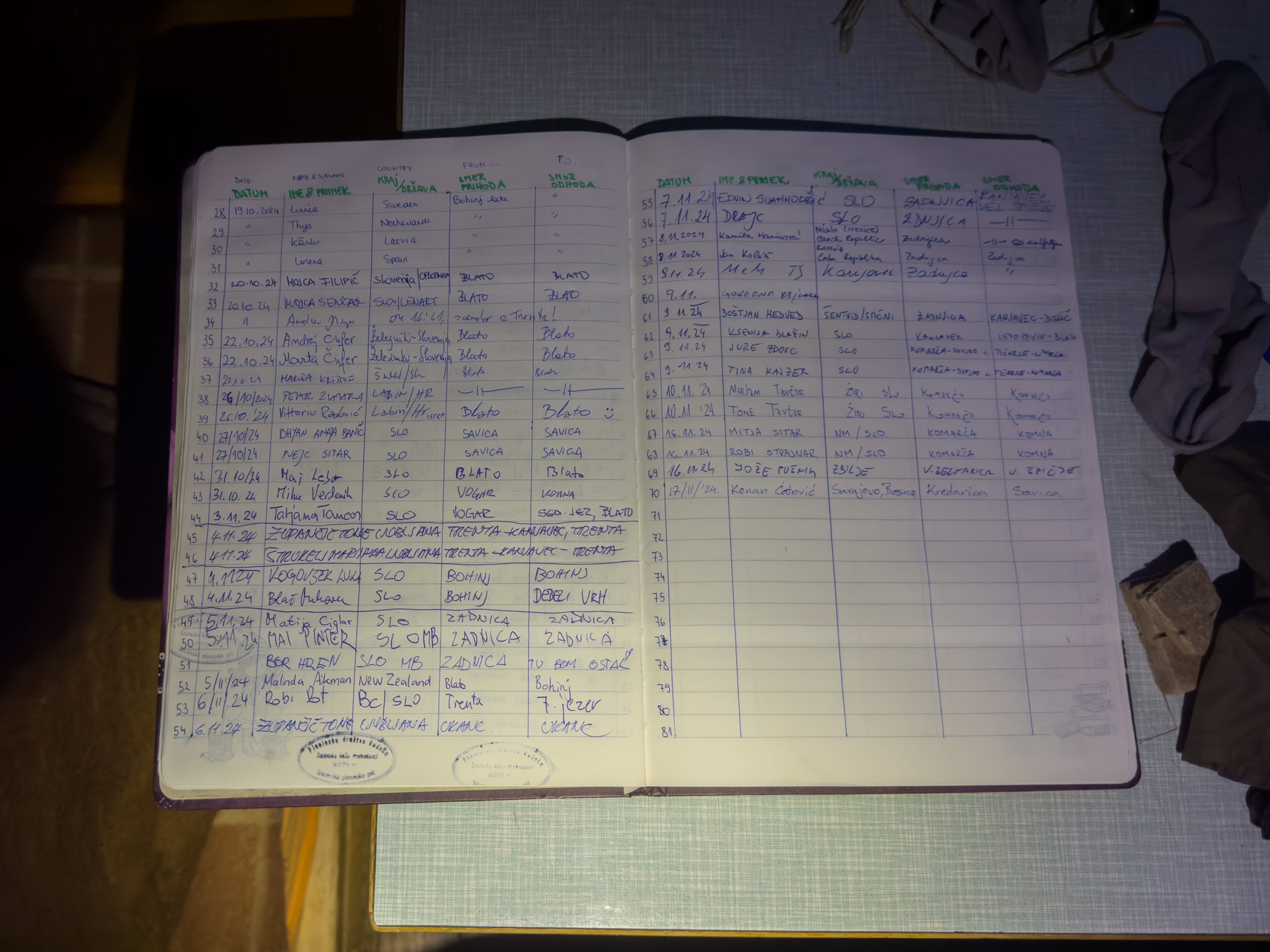 Napříč národním parkem Triglav na přelomu listopadu a prosince 2024 jsem za čtyři dny ušel 70 km pěšky. Počasí na horách bylo převážně slunečné, v noci teploty klesaly pod 0 °C. Vystoupal jsem do 2 062 m n. m., kde sníh dosahoval maximálně po kolena, a přespal jednu noc v útulně na Prehodavci; jinak spaní bylo v hamace s karimatkou na pohodu. Cestou jsem nepotkal skoro žádného turistu, a tudíž jsem si mohl v klidu vychutnávat ticho v krajině a pozorovat zvířata, zejména divoké kozy. Doprava mě vyšla přibližně na 2 500 Kč – autobusem tam a vlakem zpět.
