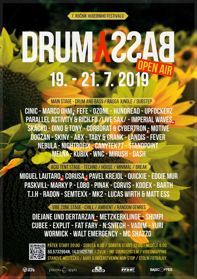 K dostaní na místě. Tři stage! Dva bary! DrumyBassy Suvenýr Shop! Místo na stany a auta, případně berte karavany. DrumYssaB soukromý řidič co vás dostane bezpečně na mejdan a zpět také zajištěn, číslo xxxxxxxxx brzy veřejné!
