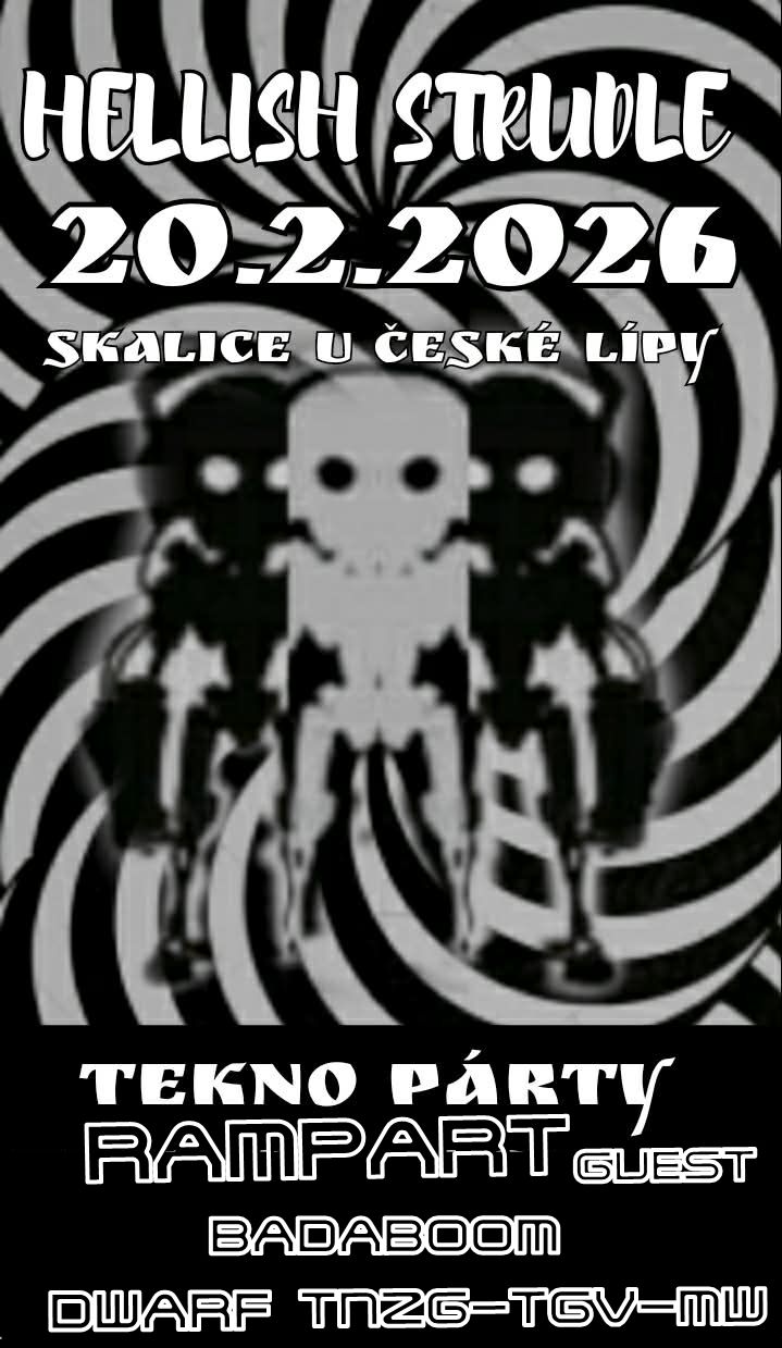Pozvali jsme naše známé z různých soundu ,tak se můžete těšit na různé styly Tekna. A nejen zvukový zážitek ale i vizuální. Team RAMPART se postará o vaši příjemnou zábavu. Přátelé akce bude končit pár minut před příjezdem prvního ranního vlaku, buďte ohleduplní a respektujte to. Nebaví nás vás nahánět ráno jako husy a vyhazovat. Holt když to někomu řekneme pětkrát tak pak už po šesté jsme nepříjemní