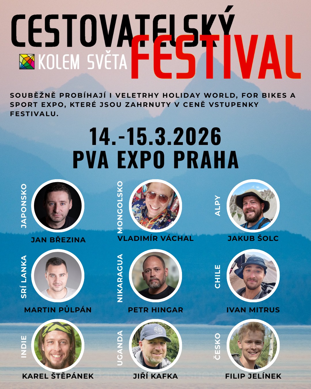 Oblíbený cestovatelský festival KOLEM SVĚTA představí osobnosti a zkušené cestovatele na výstavišti PVA EXPO PRAHA v Letňanech. Přijďte si s námi užít příjemnou atmosféru a načerpat cestovatelské zkušenosti.