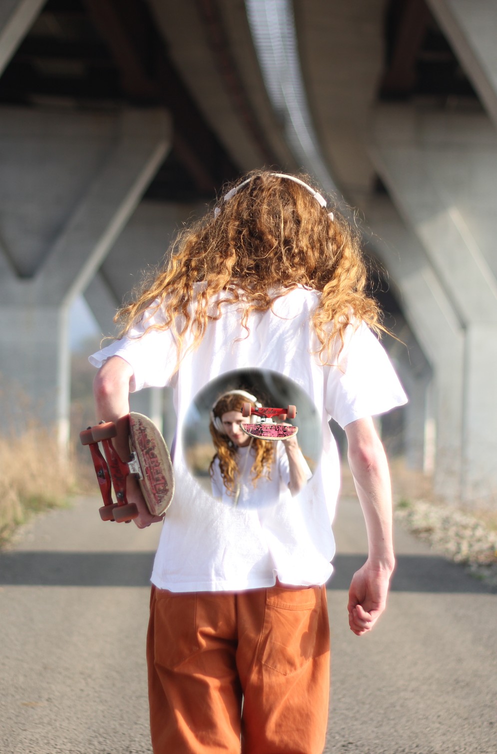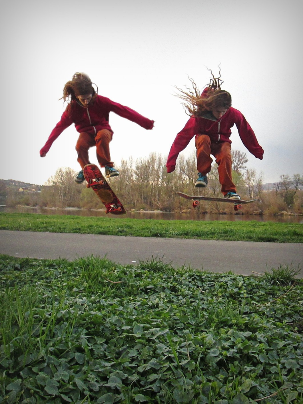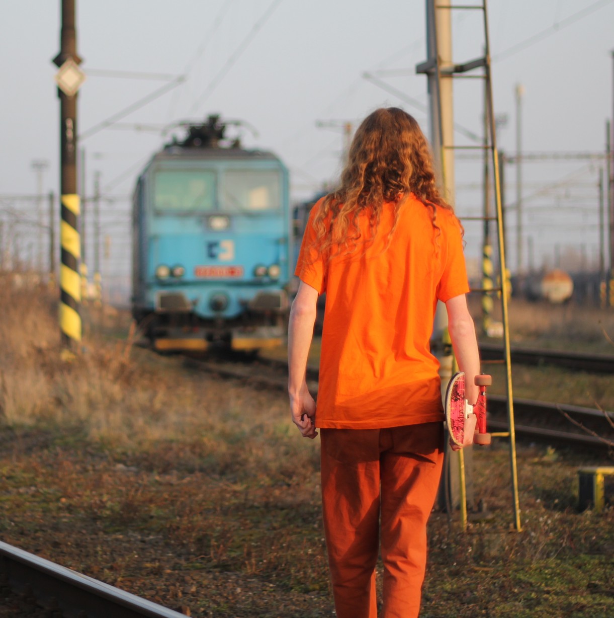 Moje úplně první fotky na skateboardu. Bylo mi okolo deseti let a skateboard byl v té době na mě moc velký. První jsem si koupil v ústeckém supermarketu a nevydržel dlouho. Za jeden měsíc moje ollie stouplo zhruba na patnáct centimetrů a to vzhledem k v mé velikosti byl opravdu pokrok, když mě nikdo neučil. Často jsem střídal nekvalitní desky z čínského javoru. Na fotce mě vidíte, jak jdu pod centrum v Rebook mikině, prvních skate botech a širokých kapsáčích. V této době ještě nebyl skatepark, takže se jezdilo v centru města po kvalitním mramorovém plácku.