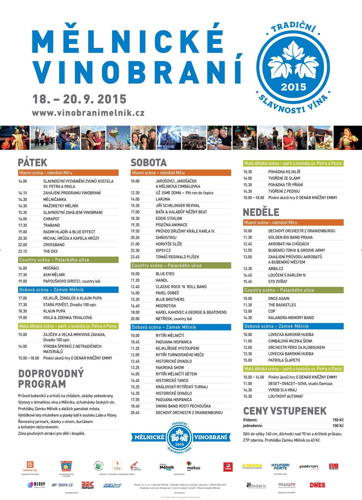 Po tři dny si můžete vychutnávat víno i burčák vyhlášených mělnických vinařství a oblíbené gastronomické speciality. Rukodělné výrobky a ukázky řemesel najdete u historických stánků.