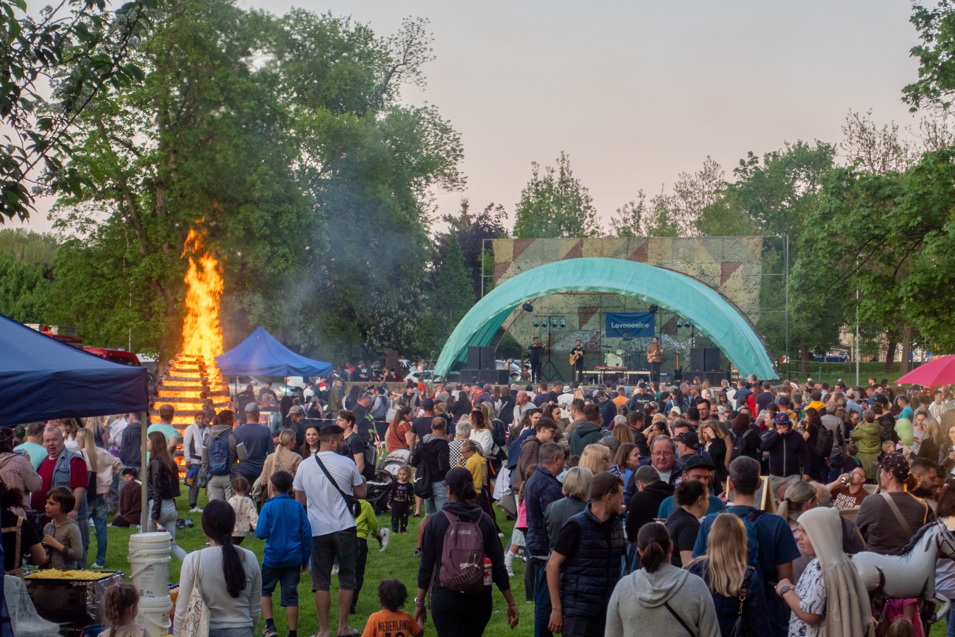 Po celý večer: atrakce, stánky, občerstvení, opékání buřtů.