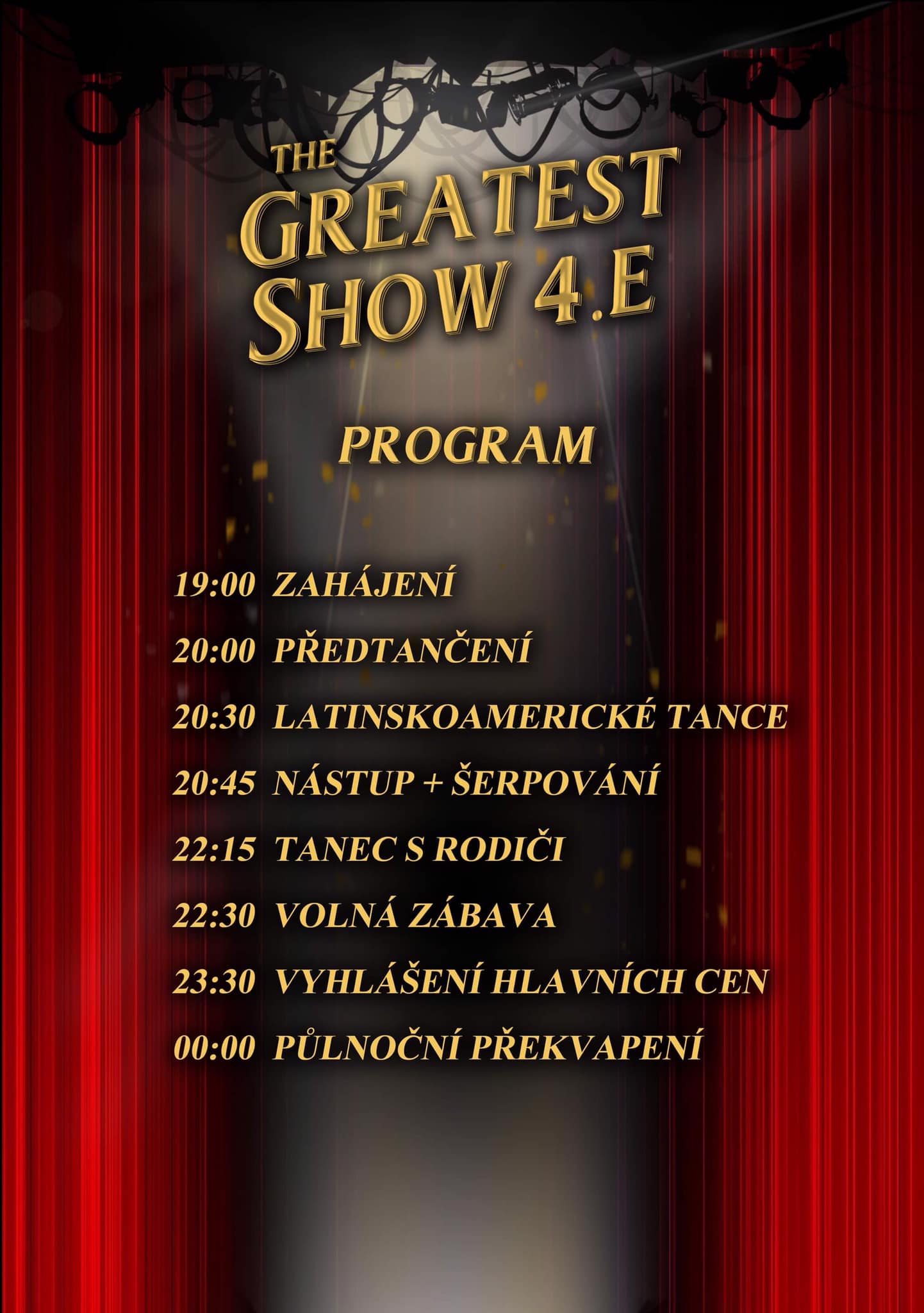 Třída 4.E vás tímto srdečně zve na nezapomenutelný maturitní ples - THE GREATEST SHOW , který se koná 21.1.2023 v kulturním domě v Litoměřicích. Těšit se můžete na nabitý program. Bavit vás budou tanečníci Maylin dance, taneční škola BellaDanza , hudební doprovod kapely No Headache, a především my a naše vlastní taneční vystoupení. Celým večerem nás bude provázet Vlastimil Čtverák. Neváhejte a přijďte, lístky budou v prodeji od prosince.