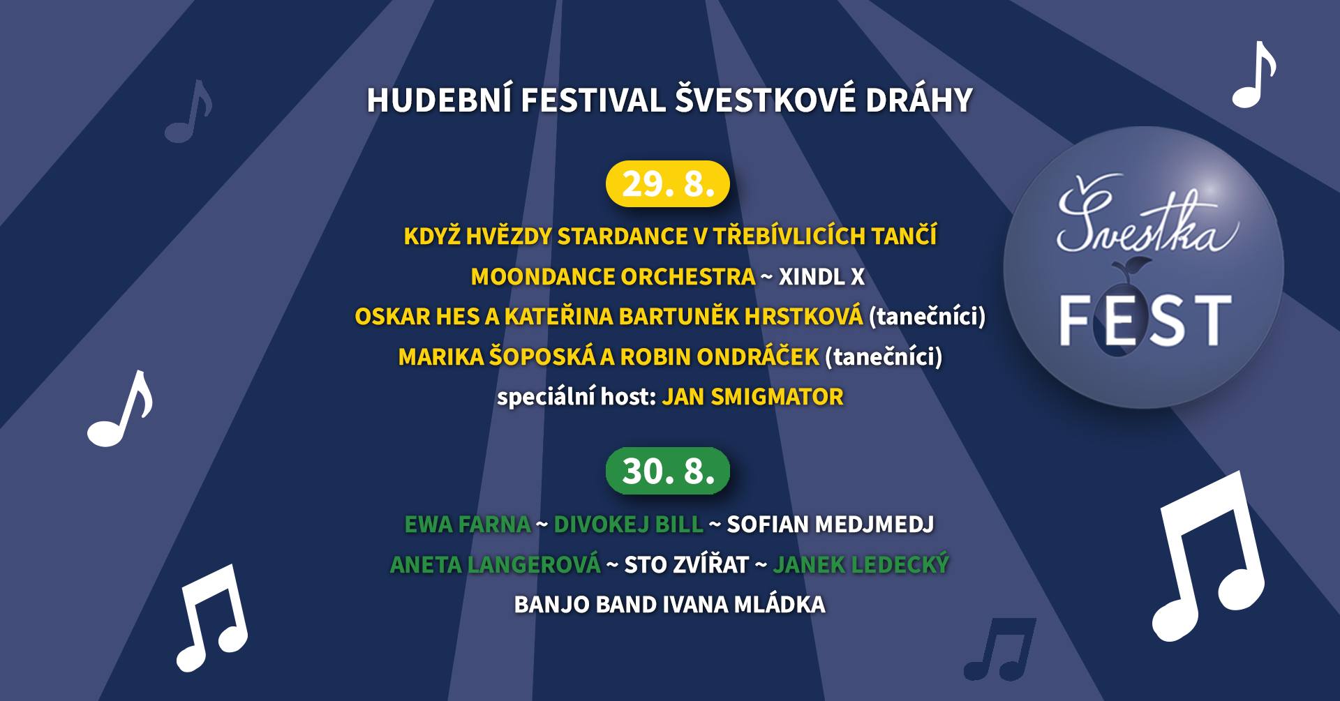Zveme vás na ŠvestkaFEST, dvoudenní hudební festival Švestkové dráhy. Festival se koná 29.–30. srpna 2025 v obci Třebívlice, která leží na trase malebné lokálky v severních Čechách, spojující Litoměřice h. n., Lovosice a Most.