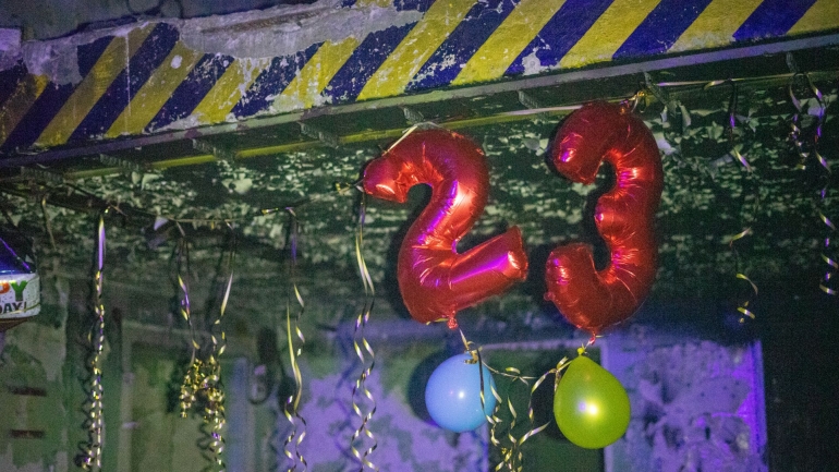 Další narozeninová zimní party v bývalém atomovém krytu.
