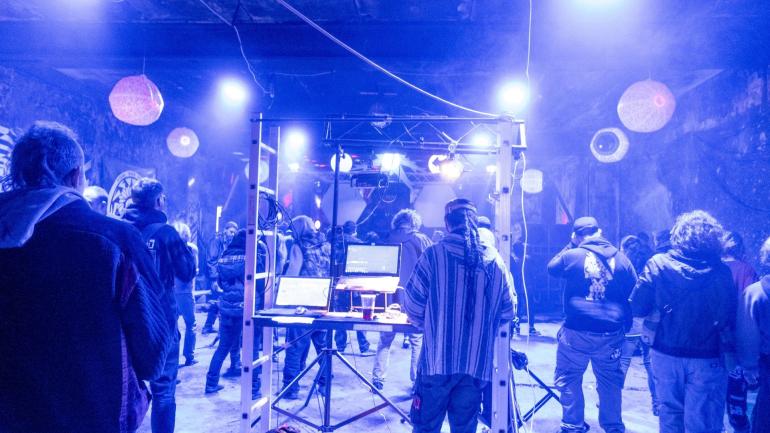 Underground free party v bývalém atomovém objektu.