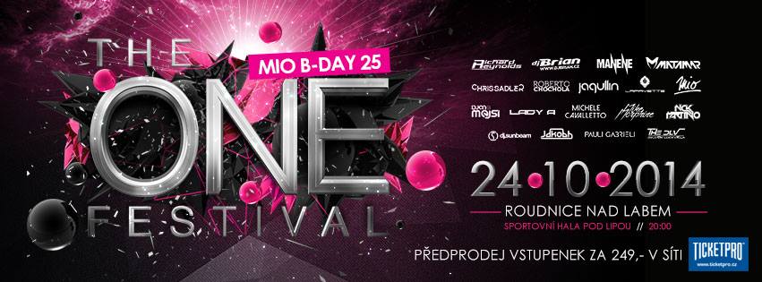 ★ The One Festival★ Uvádí první ročník nezapomenutelné show v Roudnici nad Labem s těmi nejlepšími DJ's z České republiky. ★ Kdy ? 24.10.2014 ★ Od ? 20:00 hod. ★ Kde ? Sportovní basketbalová hala Pod Lipou (Roudnice nad Labem) ★ Main stage & Coloseum stage ★ 20 DJ's + Coloseum stage ★ Speaker ★ GoGo tanečnice ★ LED projekce, festivalové osvětlení i zvuk ★ Live video vstupy, profi kameraman ★ VIP s vlastním barem a posezením Line Up Main stage 20 - 21 - The DLV (Dejvok, Lucii, Patrick Villa) 21 - 22 - Pauli Gabrieli vs. Michele Cavalletto 22 - 23 - Lady A vs. Nick Martino 23 - 00 - Jaqullin vs. Sunbeam 00 - 01 - Chris Sadler 01 - 02 - Mio vs. Mejsi 02 - 03 - Richard Reynolds vs. Manene 03 - 04 - Brian vs. Lafayete 04 - 05 - Matamar 05 - 06 - Roberto Chochola vs. Mike Morphine Line Up Coloseum (After stage) 22 - 23 - Starling 23 - 00 - Exillim 00 - 01 - Carlos 01 - 02 - Styx vs. Andy Smitth 02 - 03 - CzedA 03 - 04 - Mike Frost 04 - 05 - Silver 05 - 06 - Kojda 06 - 07 - Jumper 07 - 08 - Jakobh 08 - 09 - Alesh 09 - 10 - Tono 10 - 11 - Patrick N 11 - 12 - Jumper Line up Techno Talent stage 20:00 - 21:00 - Elvis Maslic 21:00 - 22:00 - ZiKi 22:00 - 23:00 - Jumper 23:00 - 24:00 - LADY A 00:00 - 01:00 - Aironyx 01:00 - 02:00 - Dj Roligo 02:00 - 03:00 - DEEP DEER 03:00 - 04:00 - CAIT 04:00 - 05:00 - JAKOBH 05:00 - 06:00 - DeadNoise Odkaz na prodej vstupenek a datum se brzy dozvíte. ★ První vlna vstupenek 150 Kč ★ ★ Druhá vlna vstupenek 180 Kč ★ ★ Na místě 250,- ★ ★ VIP vstupné 450 Kč ★ Vlastní vstup, WC, security, bar. Naléváni do skla a posezení + občerstvení na stolech. ★★★GOLD VIP (BACKSTAGE) 1500,-★★★ Vlastní vstup, WC, bar, security, nalévání do skla, posezení, raut, pití v ceně vstupenky, v blízkosti všech DJs, nejlepší výhled na celou scénu. Více informací na info.onefestival@gmail.com