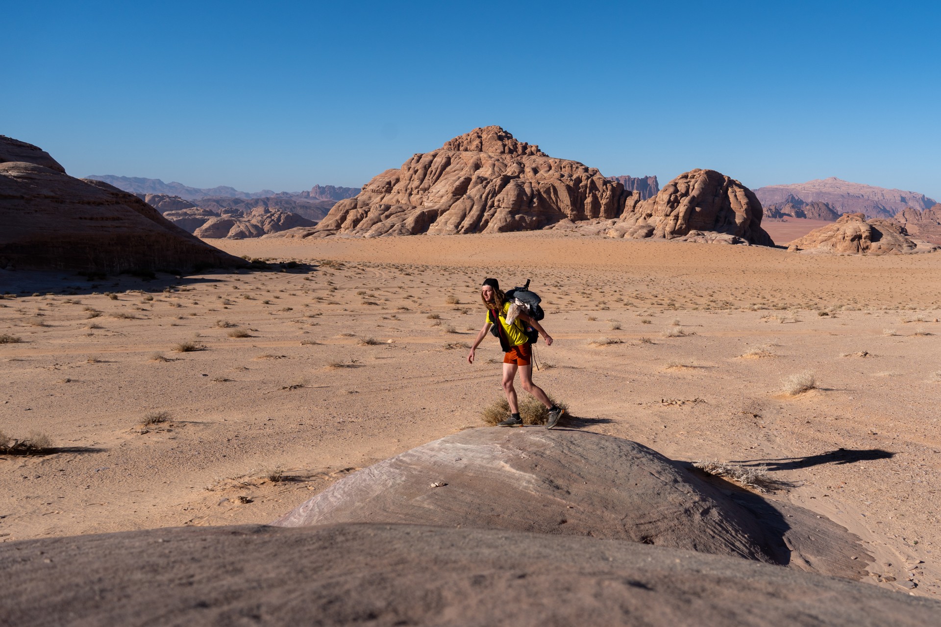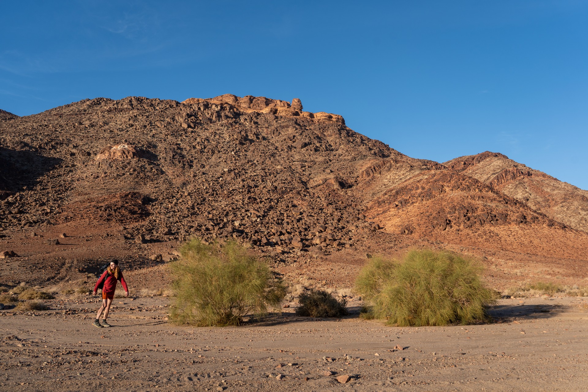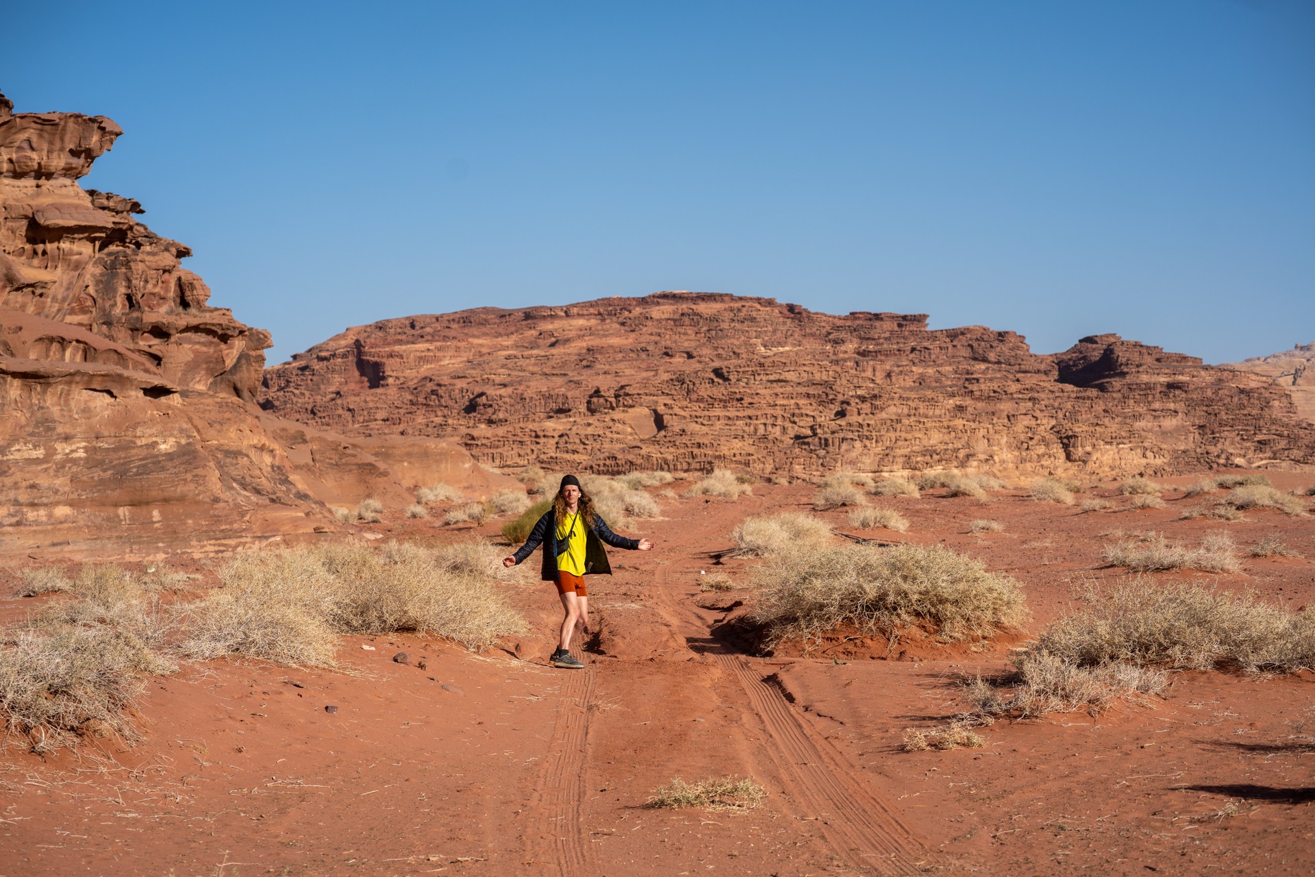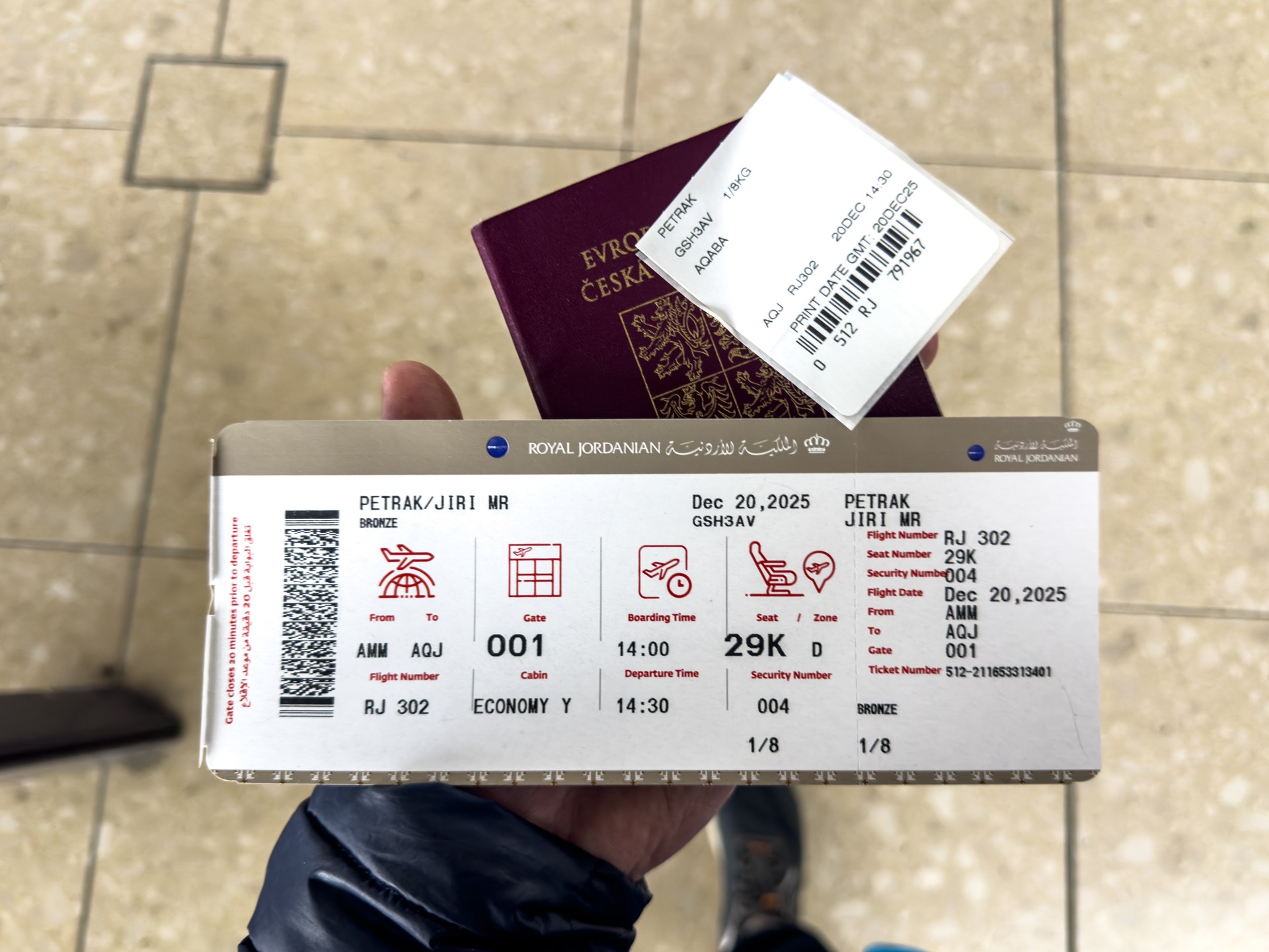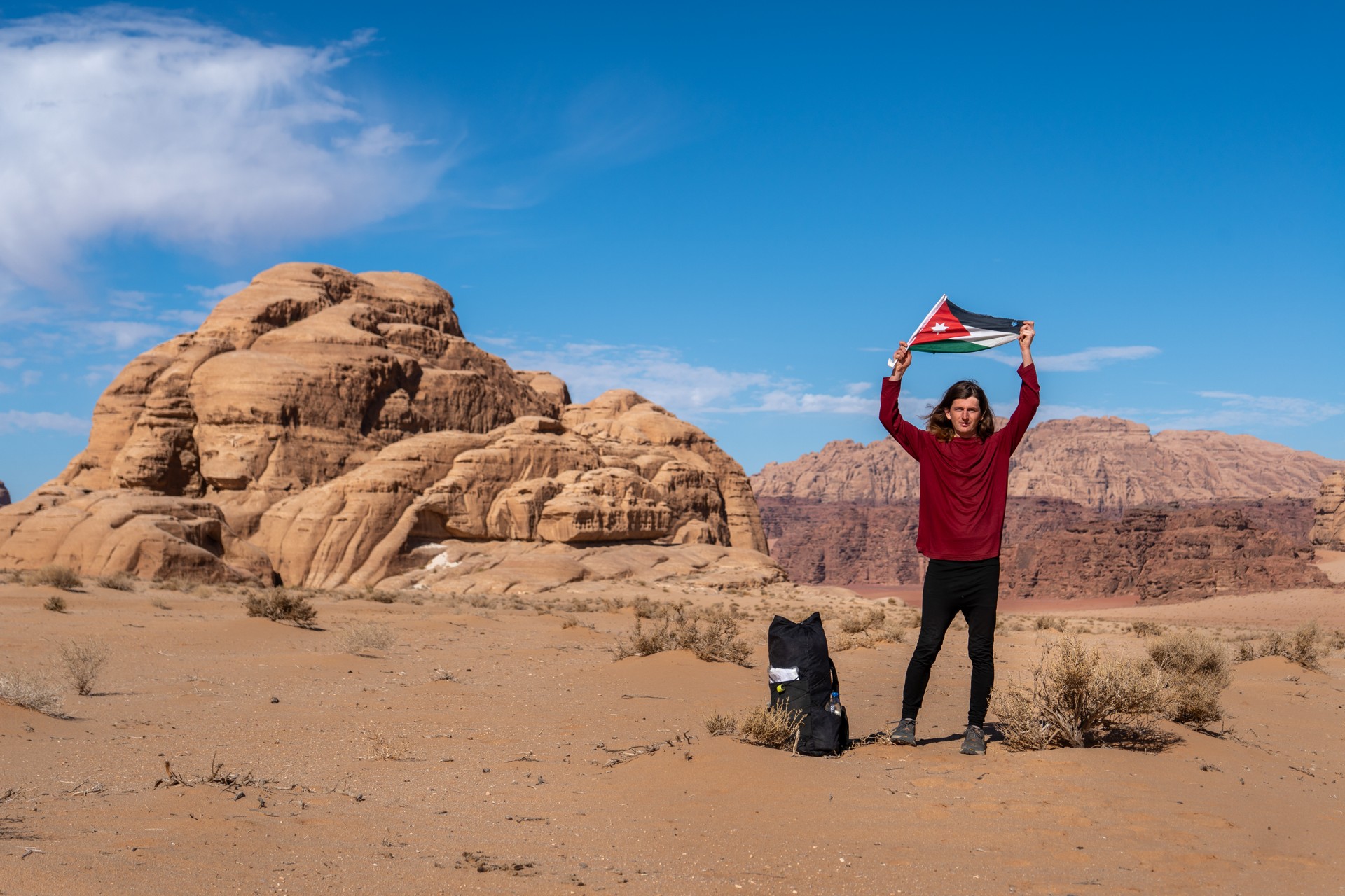 Druhá cesta do Jordánska, na týden během Vánoc 2025, vedla letecky do Ammánu. Pro rychlý přesun na jih jsem využil vnitrostátní let národního dopravce Royal Jordanian do Akaby, odkud jsem se vydal do chráněného území Vádí Rum na šestidenní cestu pouští. Od moře jsem vystoupal do nadmořské výšky 1 200 metrů, kde se denní teploty pohybovaly kolem 15 °C a v noci klesaly pod 5 °C.