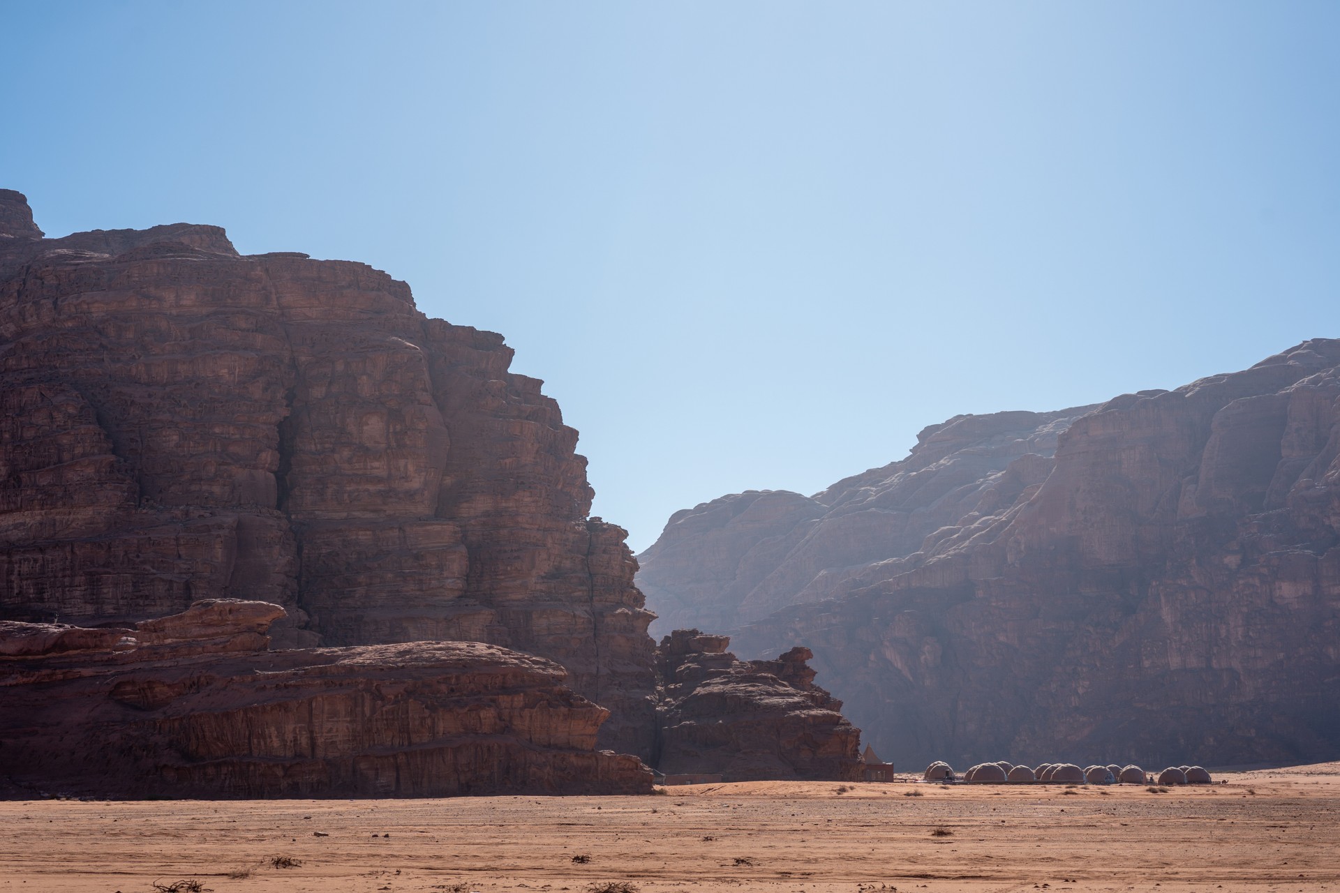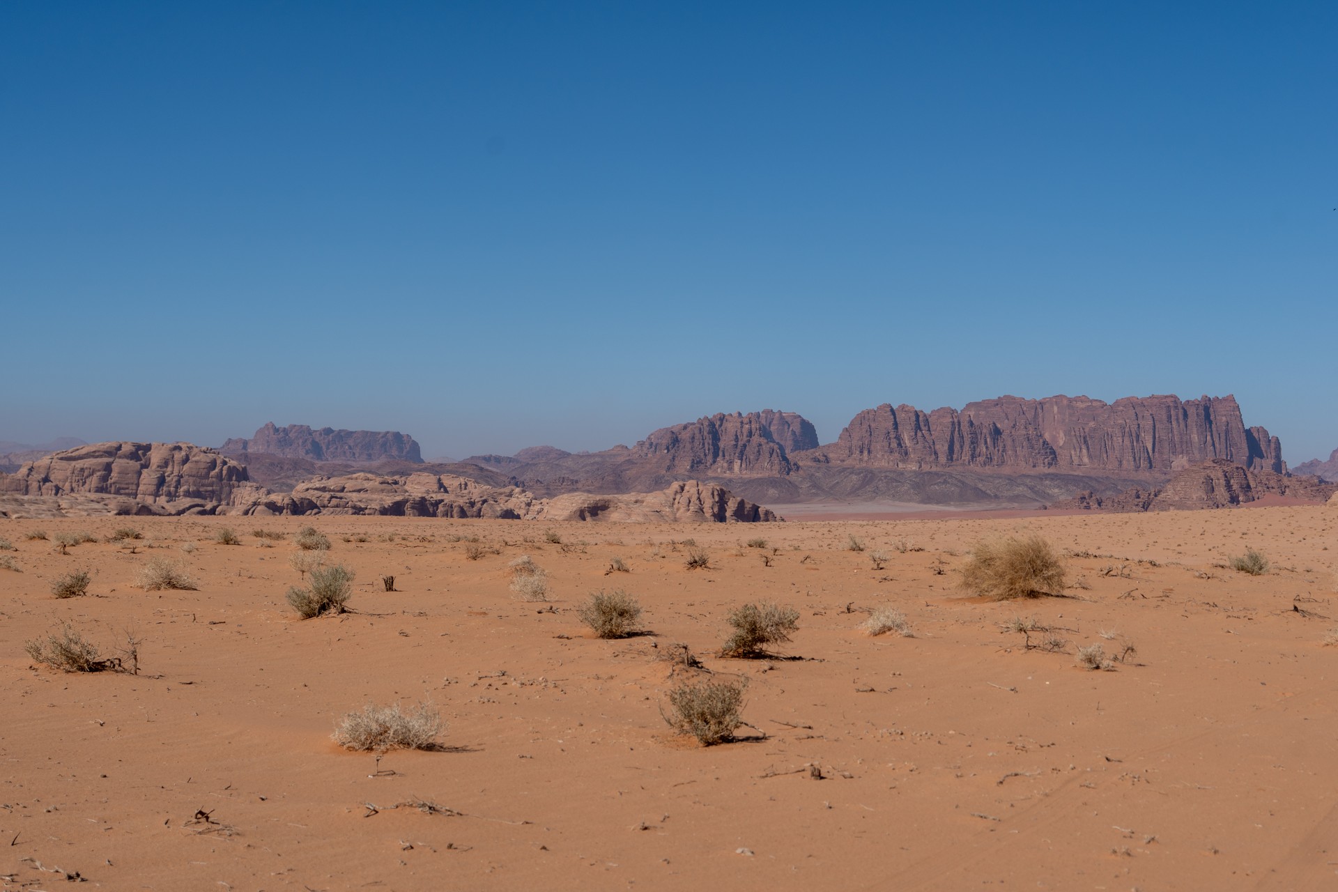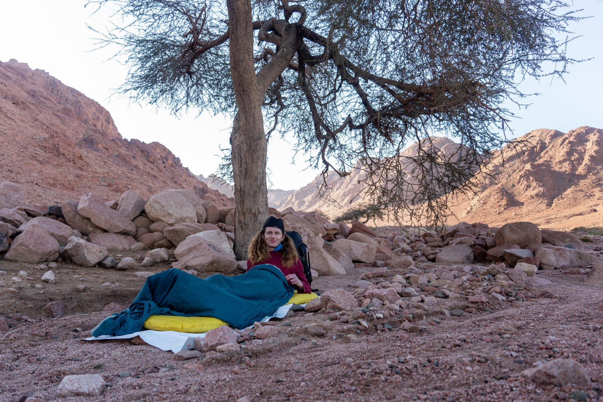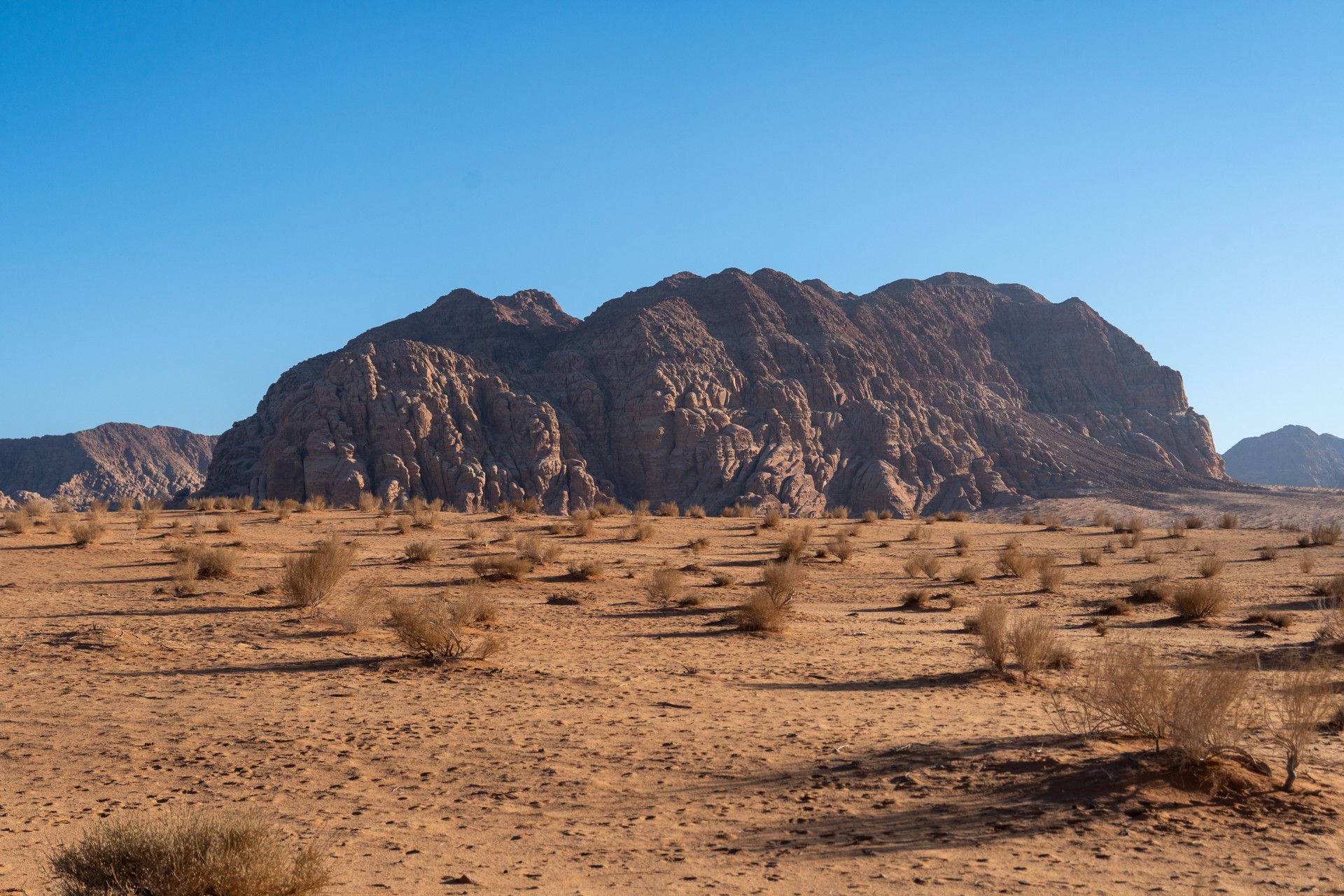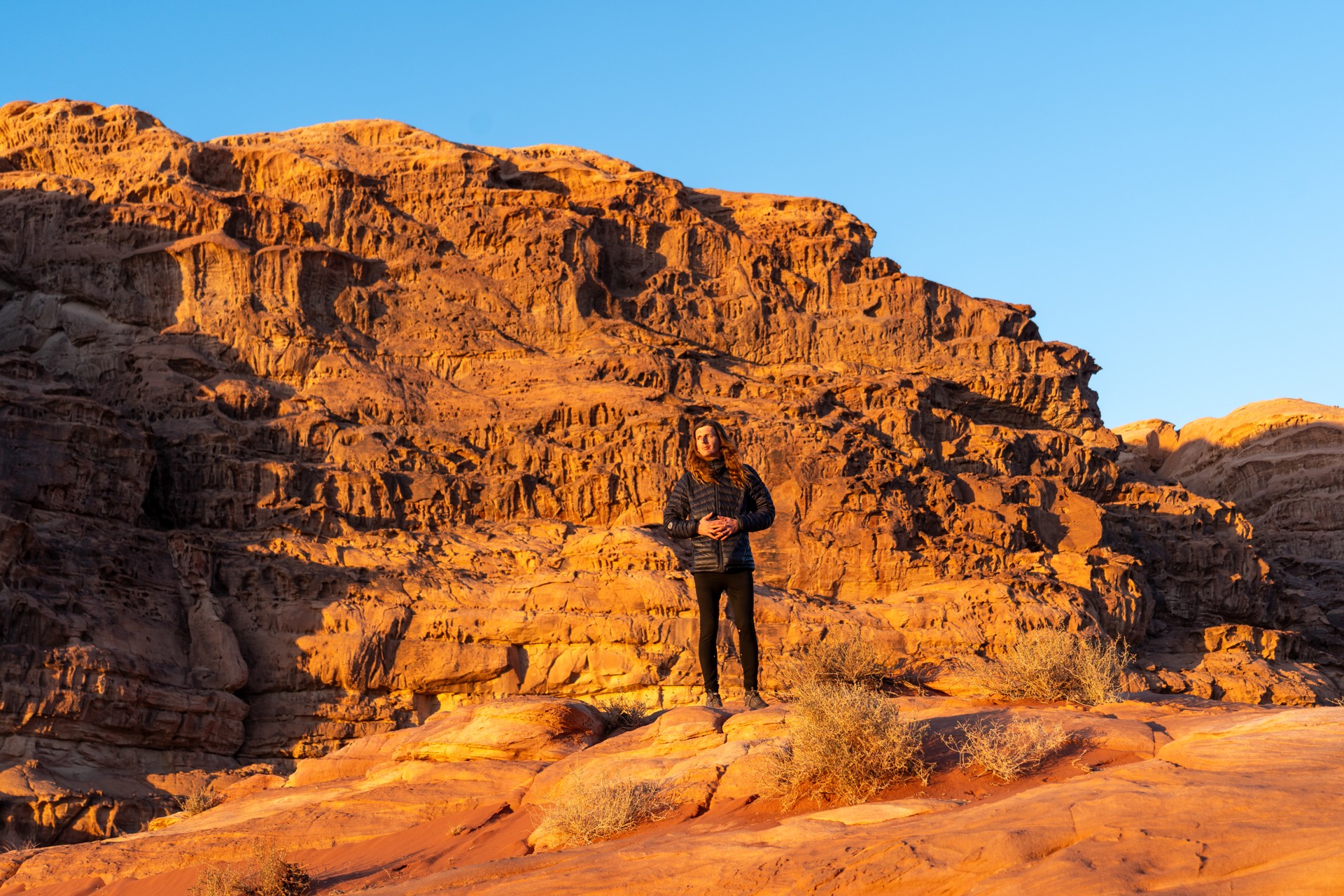 Druhá cesta do Jordánska, na týden během Vánoc 2025, vedla letecky do Ammánu. Pro rychlý přesun na jih jsem využil vnitrostátní let národního dopravce Royal Jordanian do Akaby, odkud jsem se vydal do chráněného území Vádí Rum na šestidenní cestu pouští. Od moře jsem vystoupal do nadmořské výšky 1 200 metrů, kde se denní teploty pohybovaly kolem 15 °C a v noci klesaly pod 5 °C.