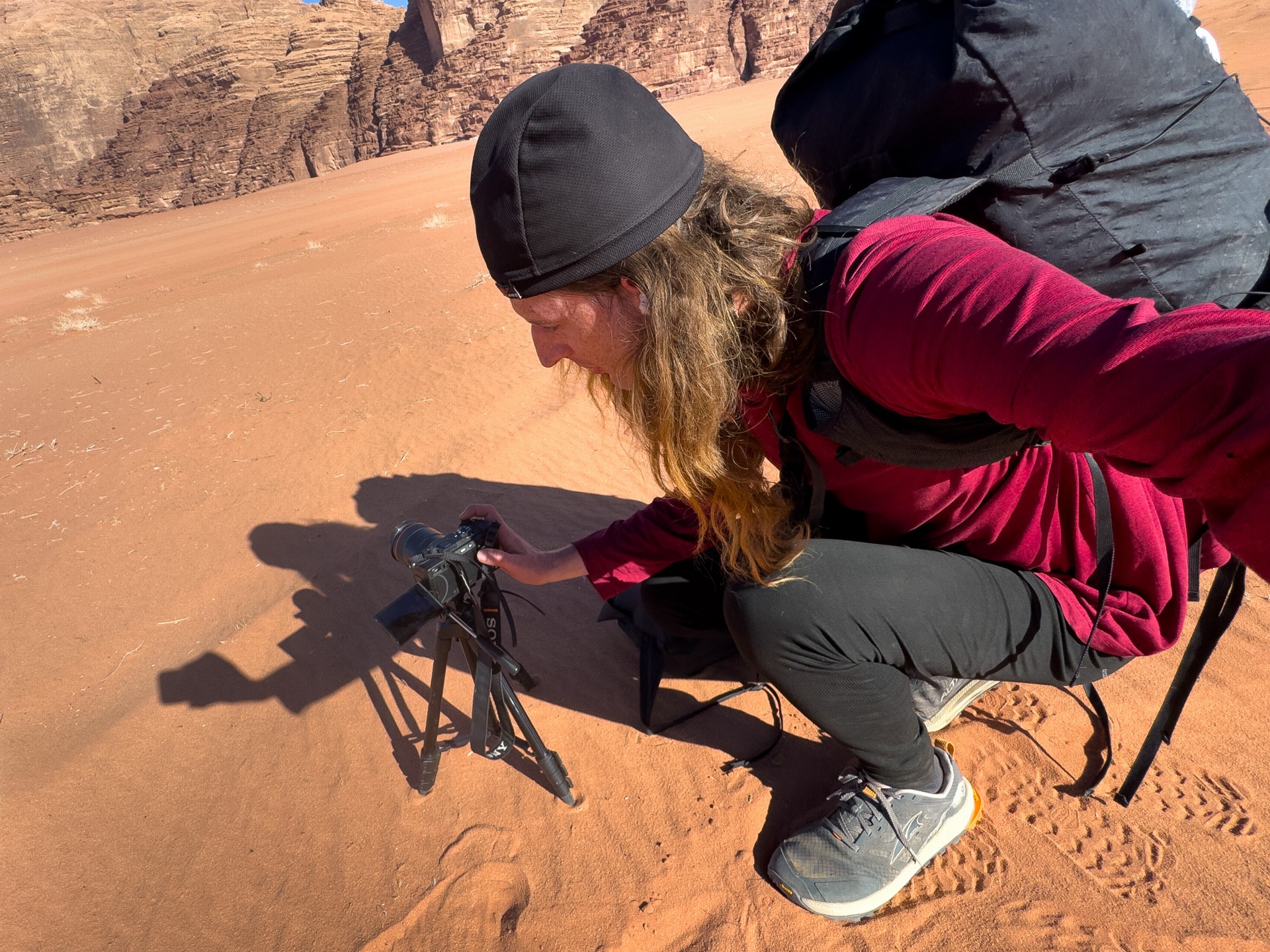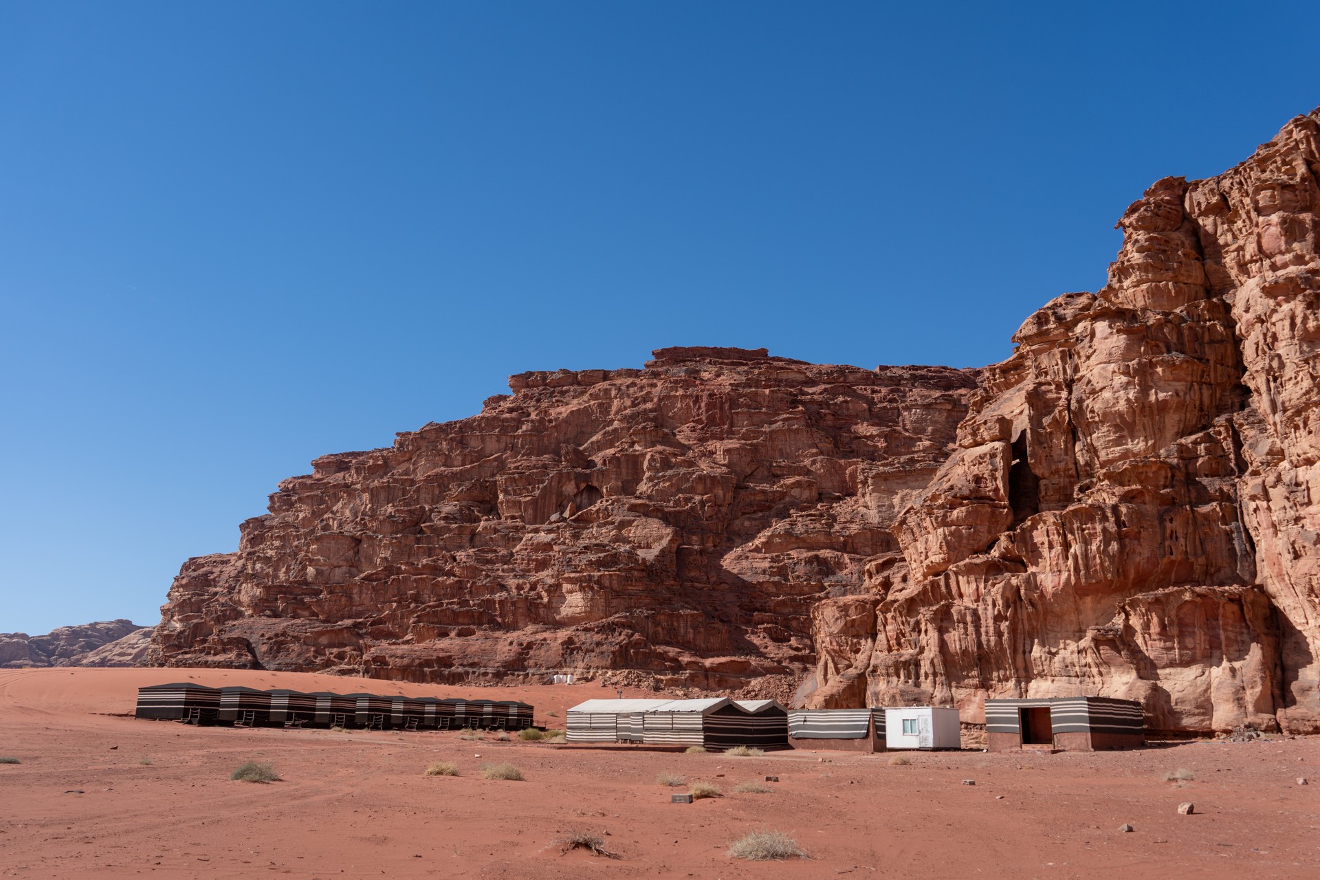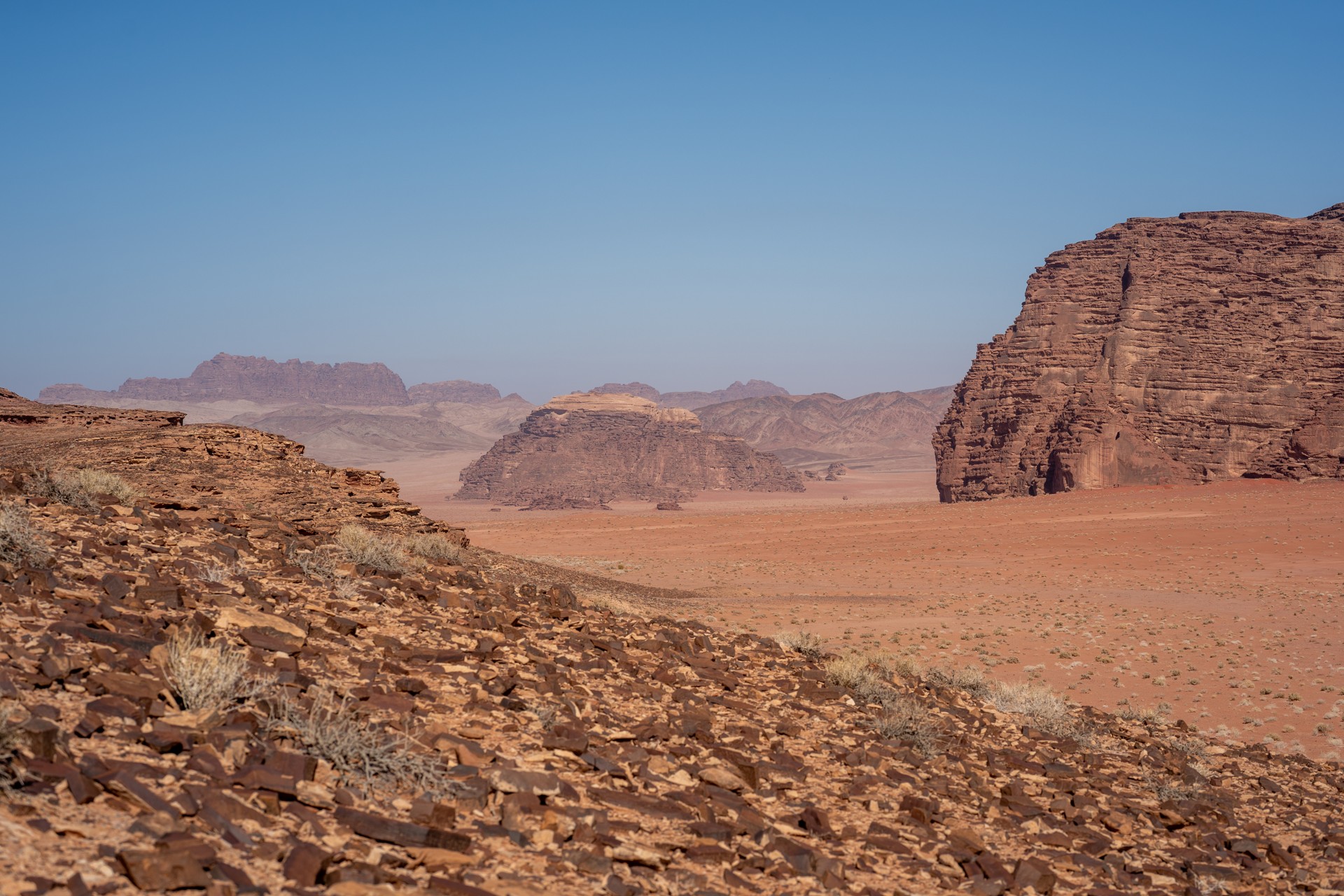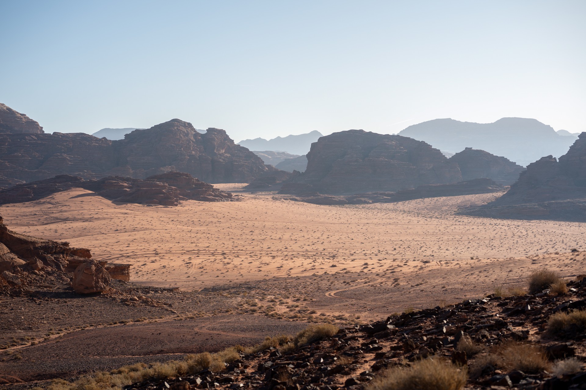 Druhá cesta do Jordánska, na týden během Vánoc 2025, vedla letecky do Ammánu. Pro rychlý přesun na jih jsem využil vnitrostátní let národního dopravce Royal Jordanian do Akaby, odkud jsem se vydal do chráněného území Vádí Rum na šestidenní cestu pouští. Od moře jsem vystoupal do nadmořské výšky 1 200 metrů, kde se denní teploty pohybovaly kolem 15 °C a v noci klesaly pod 5 °C.