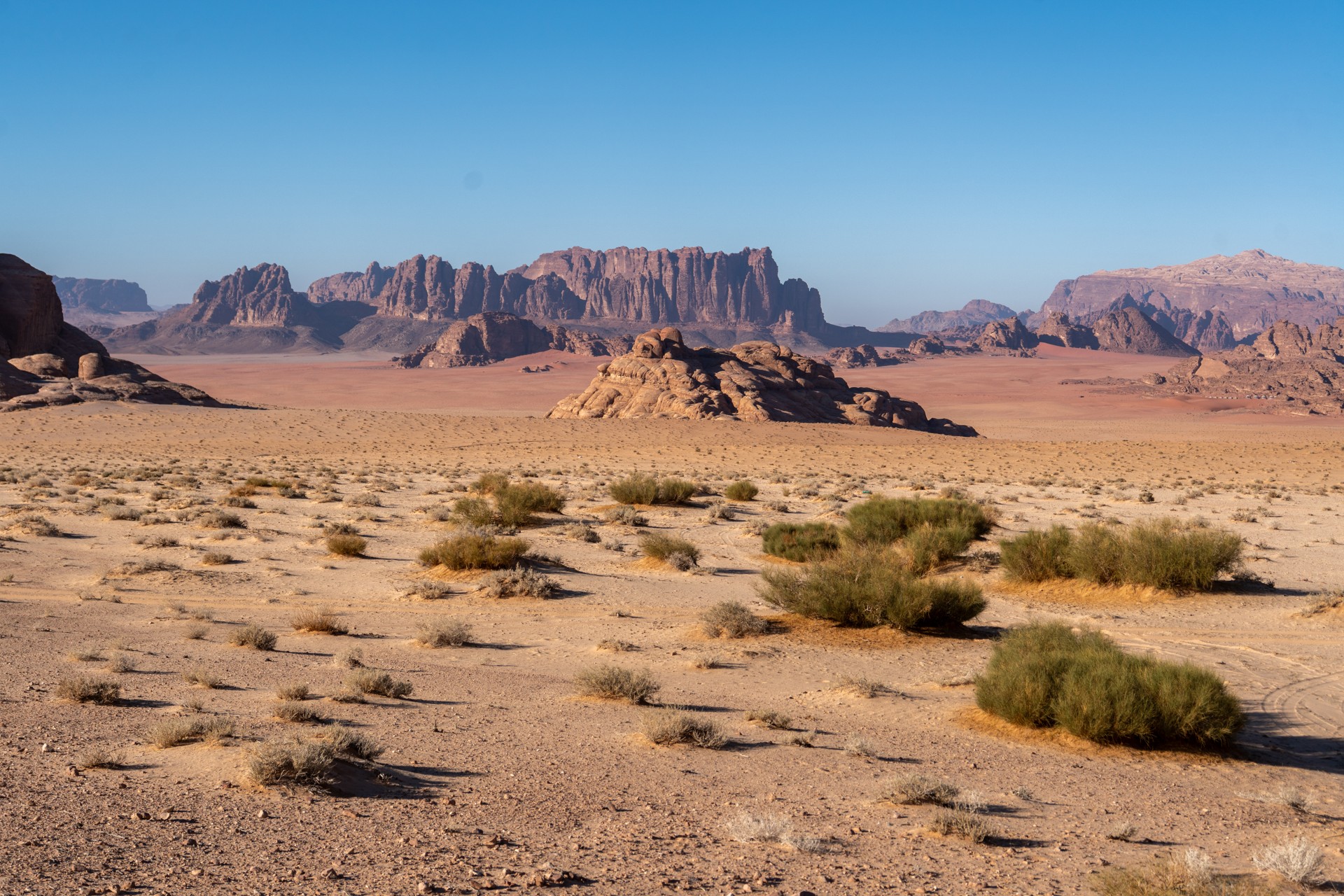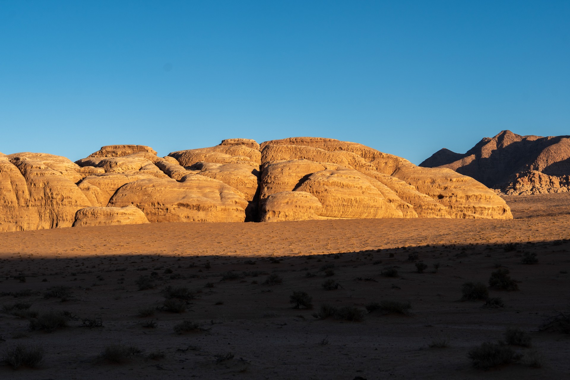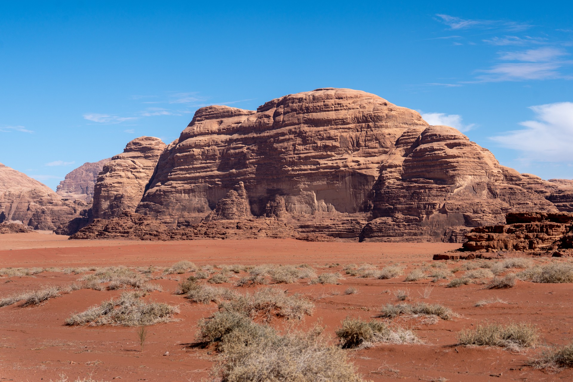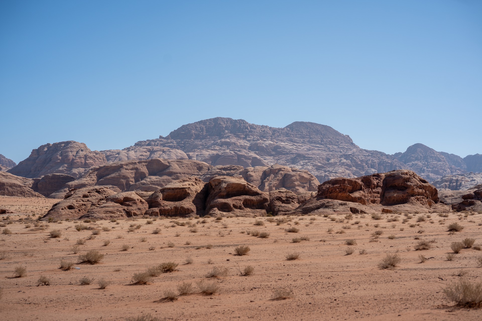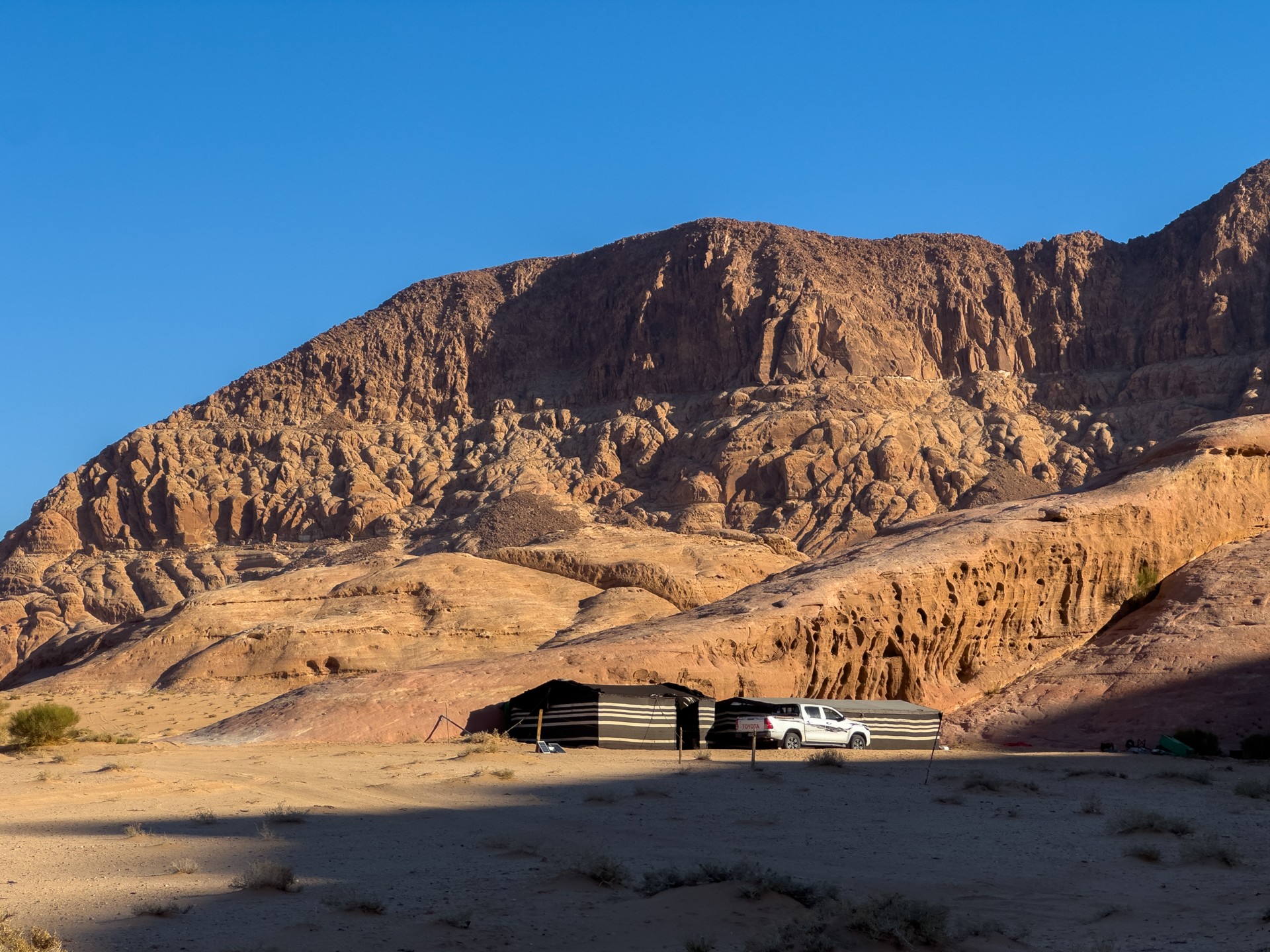 Druhá cesta do Jordánska, na týden během Vánoc 2025, vedla letecky do Ammánu. Pro rychlý přesun na jih jsem využil vnitrostátní let národního dopravce Royal Jordanian do Akaby, odkud jsem se vydal do chráněného území Vádí Rum na šestidenní cestu pouští. Od moře jsem vystoupal do nadmořské výšky 1 200 metrů, kde se denní teploty pohybovaly kolem 15 °C a v noci klesaly pod 5 °C.