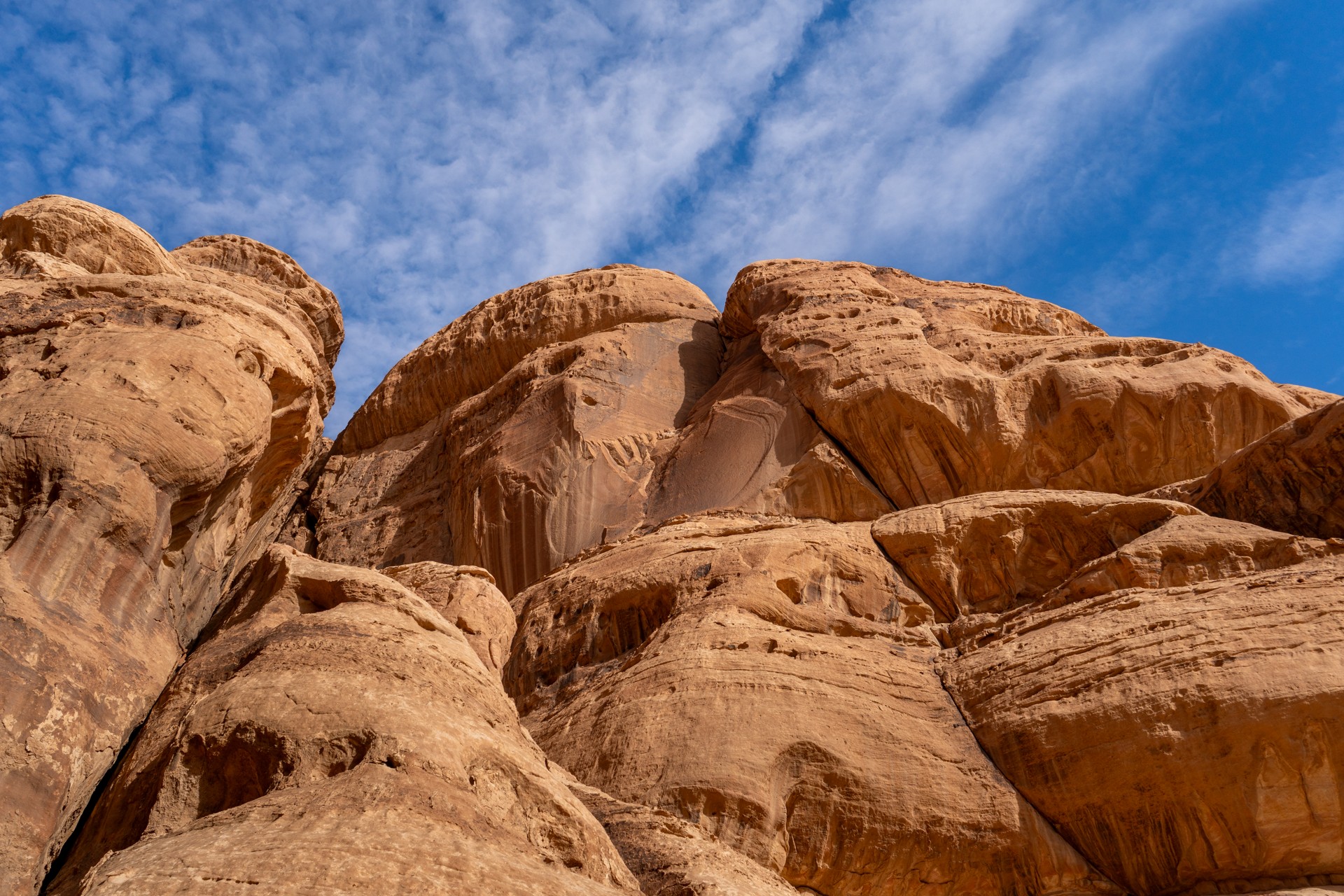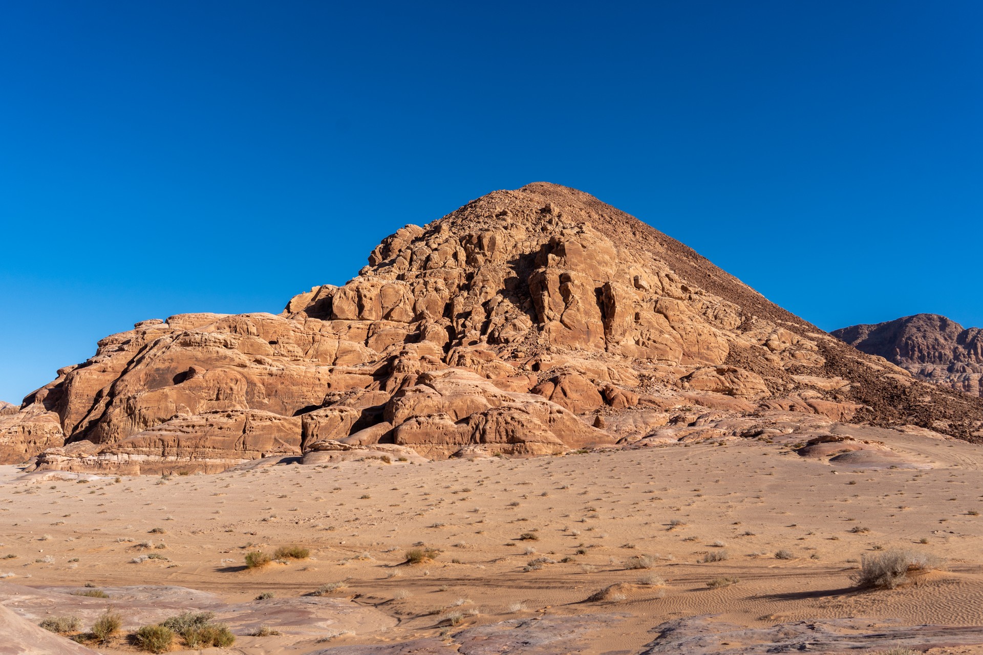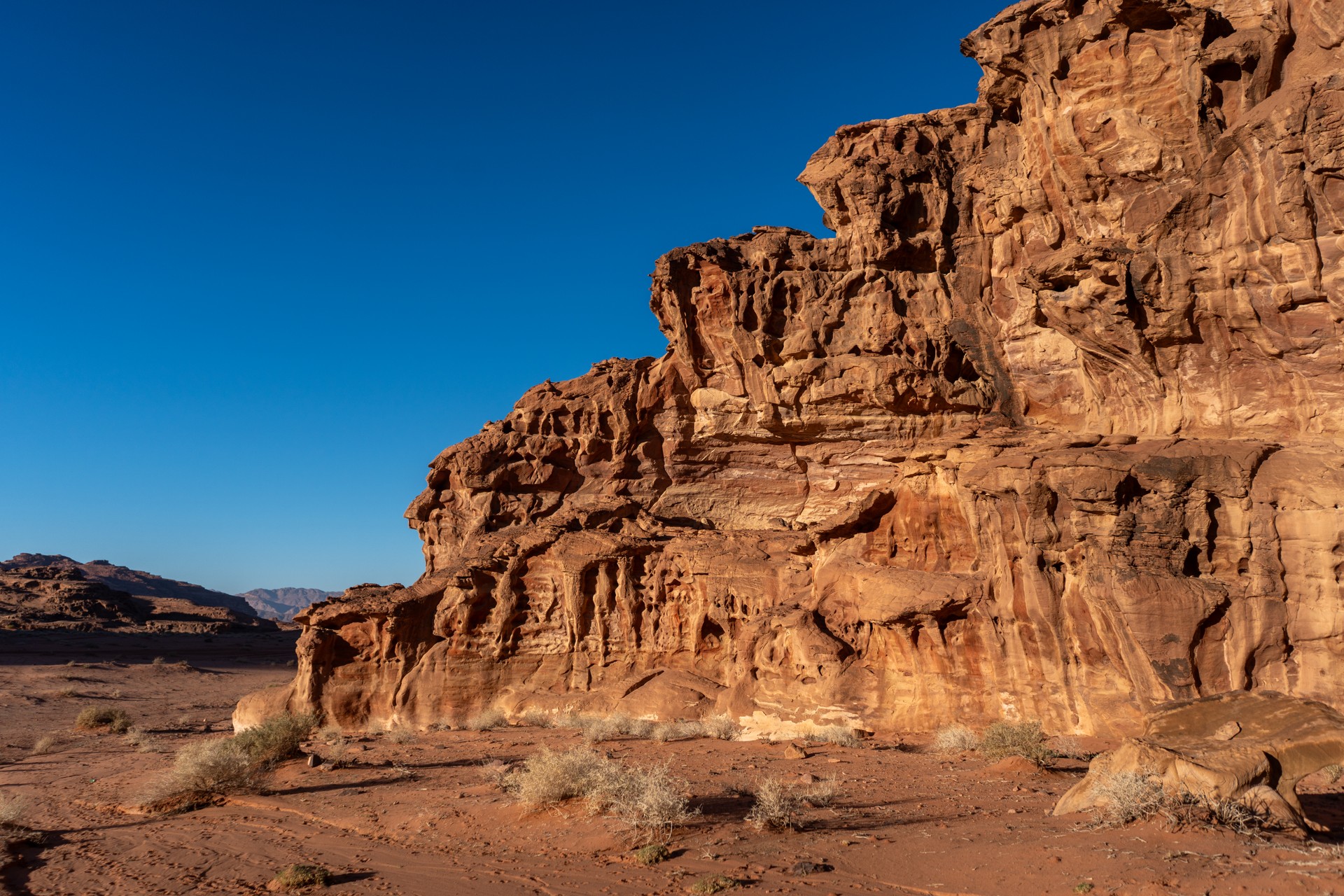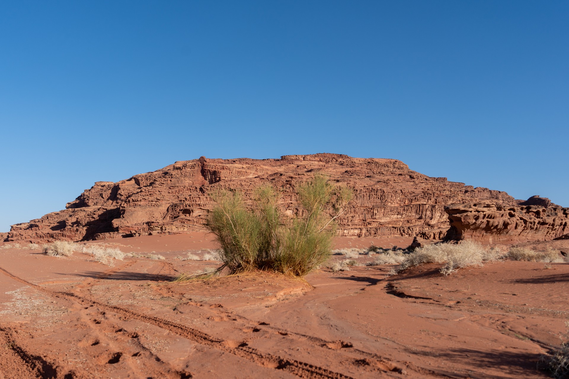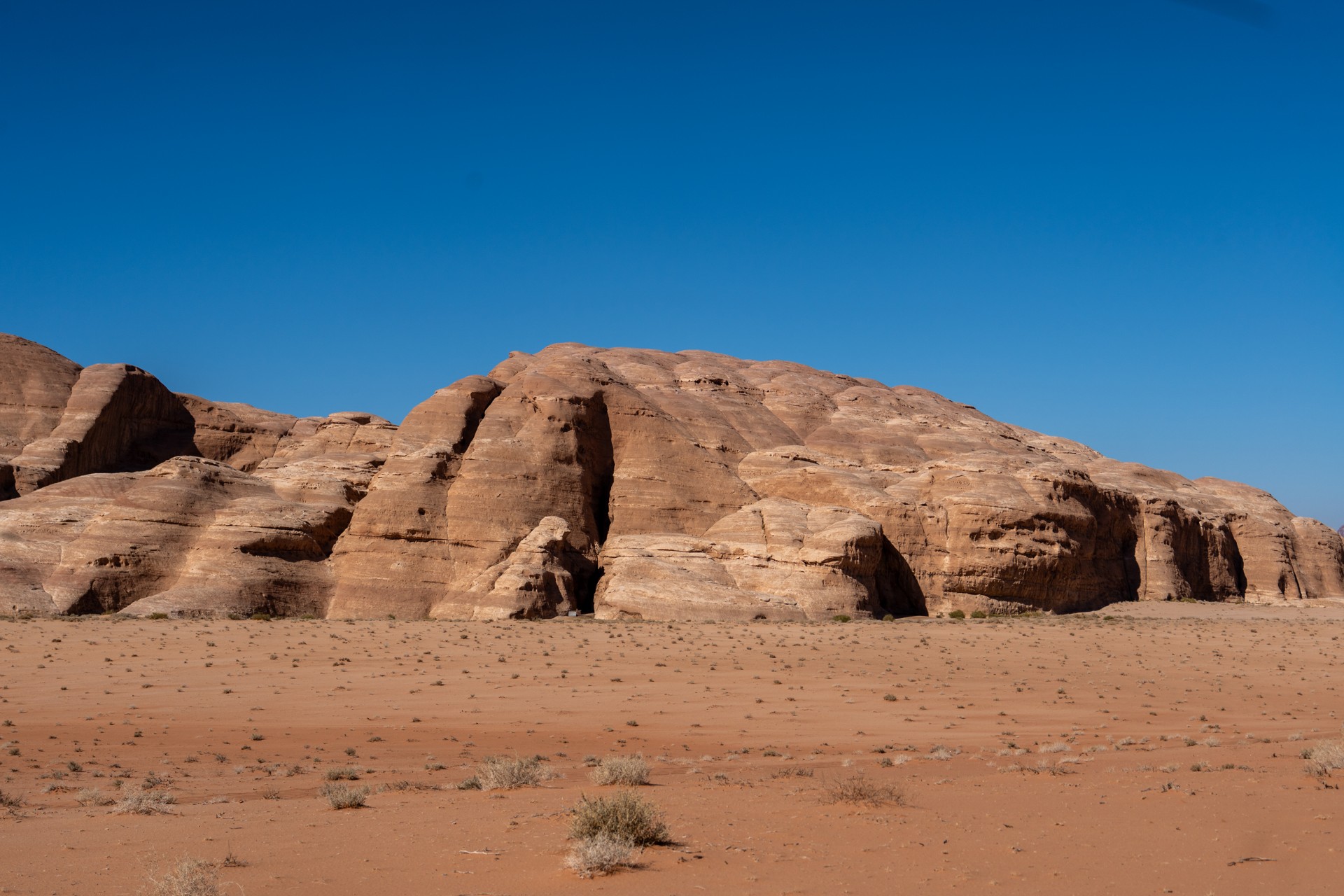 Druhá cesta do Jordánska, na týden během Vánoc 2025, vedla letecky do Ammánu. Pro rychlý přesun na jih jsem využil vnitrostátní let národního dopravce Royal Jordanian do Akaby, odkud jsem se vydal do chráněného území Vádí Rum na šestidenní cestu pouští. Od moře jsem vystoupal do nadmořské výšky 1 200 metrů, kde se denní teploty pohybovaly kolem 15 °C a v noci klesaly pod 5 °C.