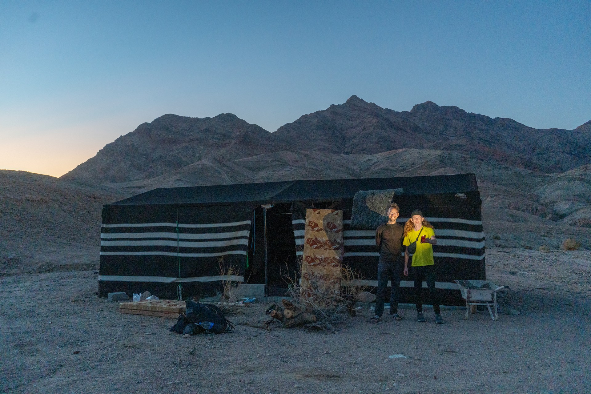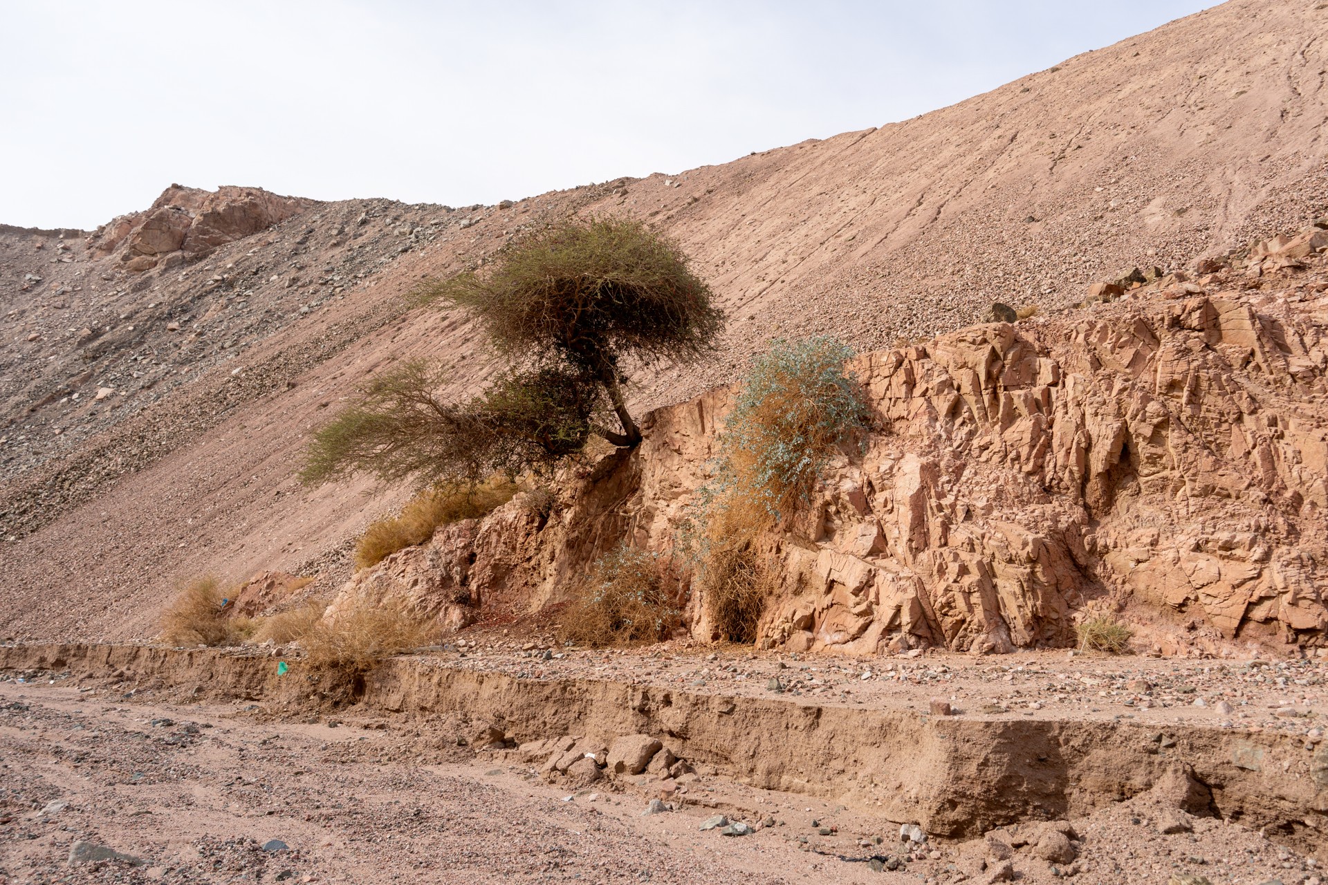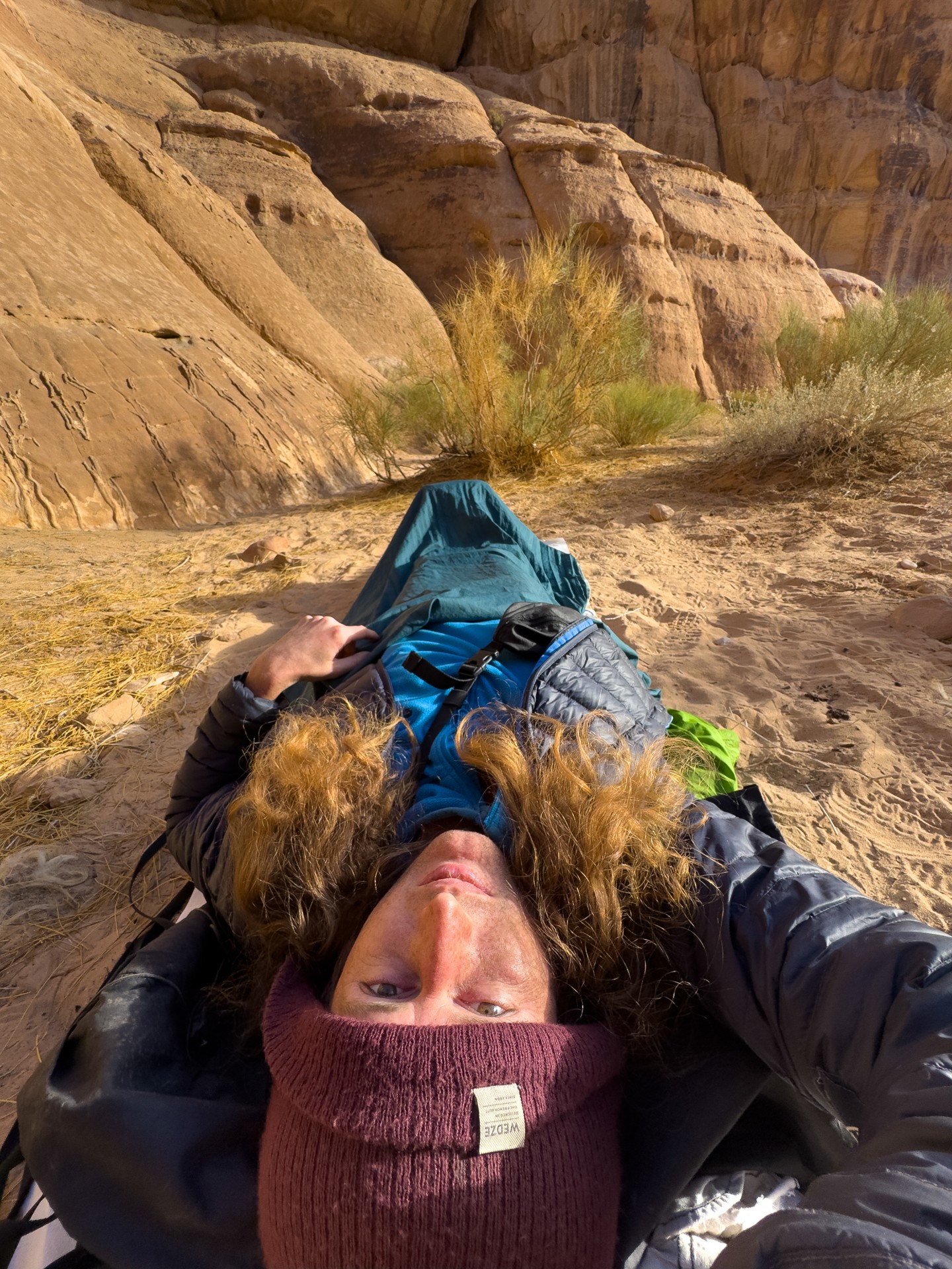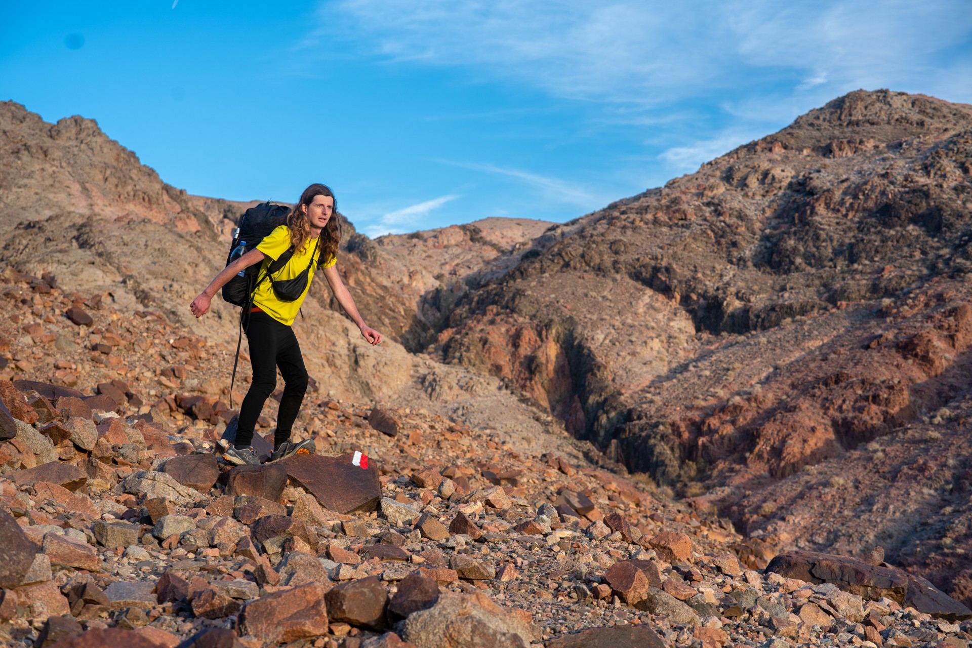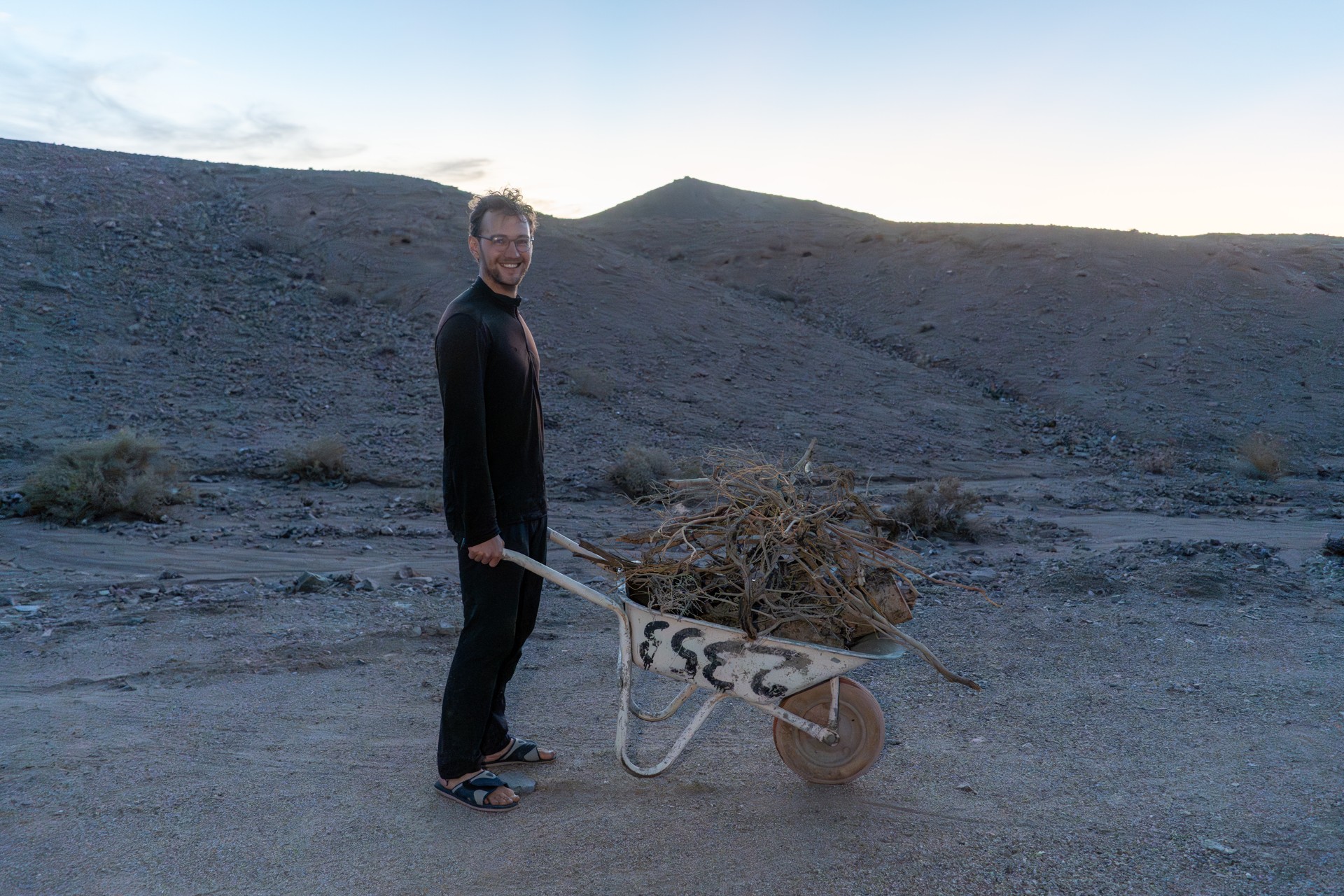V prosinci se zde výjimečně objevily deště, které nejsou pro tuto oblast obvyklé, a díky nim bylo možné cestou nabírat vodu z kaluží na skalách. Zároveň bylo možné doplnit vodu z podzemní nádrže. I tak můj batoh s šesti litry vody, fotografickou technikou a jídlem vážil přes 20 kilo. Díky příjemnému počasí se člověk příliš nepotil, přesto bylo kvůli suchému pouštnímu vzduchu důležité dbát na pitný režim. Jako vždy se dostavil i nepříjemný pocit podrážděného nosu, kdy se při smrkání objevovala krev.