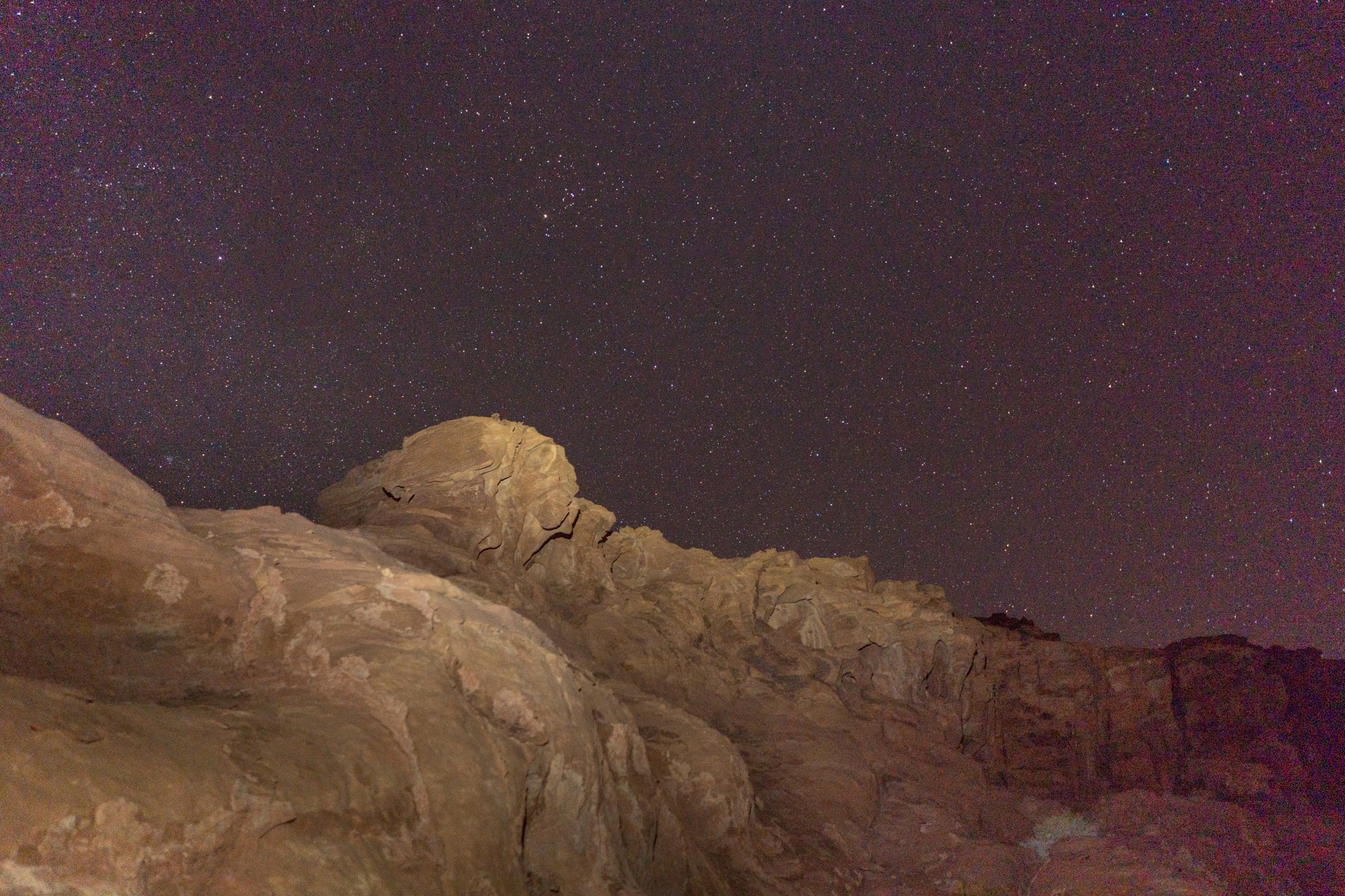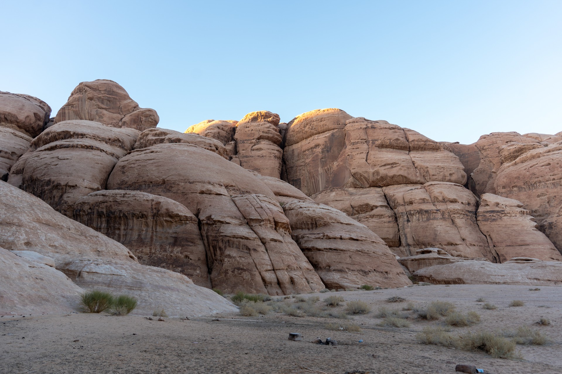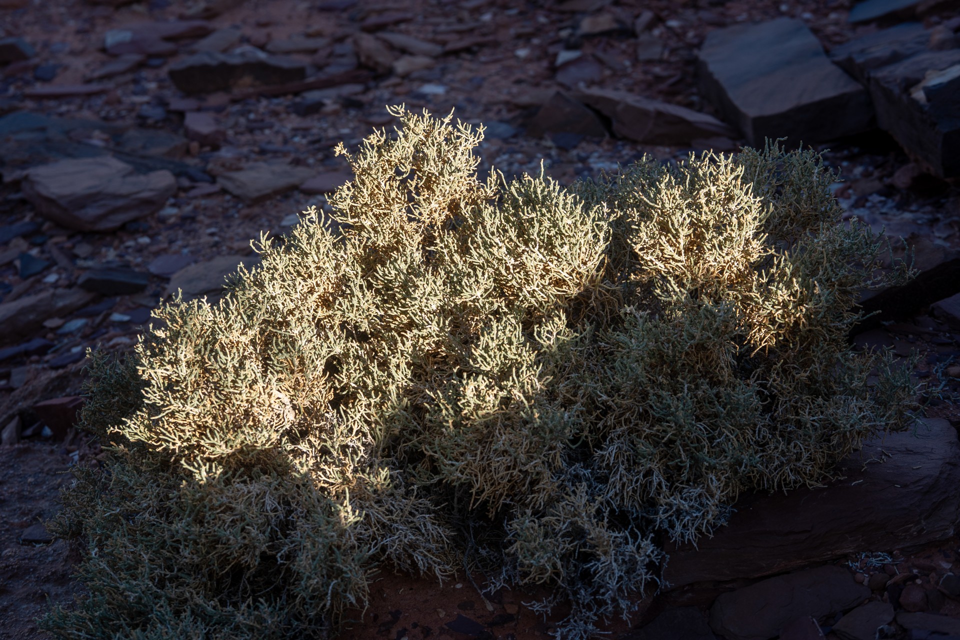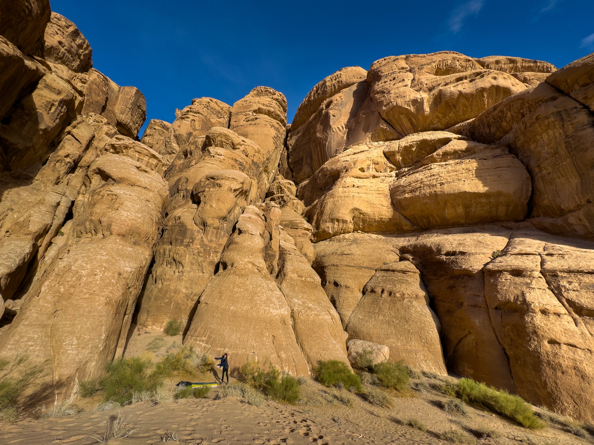 V prosinci se zde výjimečně objevily deště, které nejsou pro tuto oblast obvyklé, a díky nim bylo možné cestou nabírat vodu z kaluží na skalách. Zároveň bylo možné doplnit vodu z podzemní nádrže. I tak můj batoh s šesti litry vody, fotografickou technikou a jídlem vážil přes 20 kilo. Díky příjemnému počasí se člověk příliš nepotil, přesto bylo kvůli suchému pouštnímu vzduchu důležité dbát na pitný režim. Jako vždy se dostavil i nepříjemný pocit podrážděného nosu, kdy se při smrkání objevovala krev.