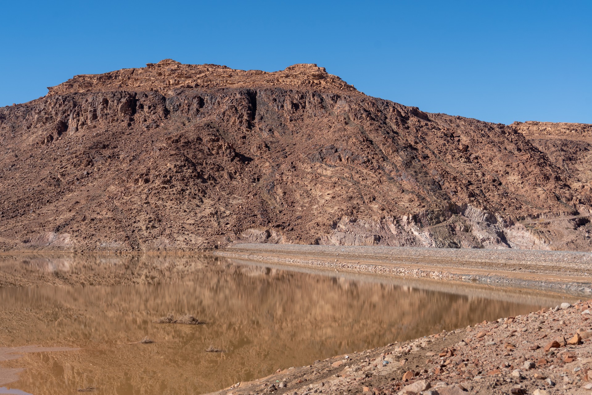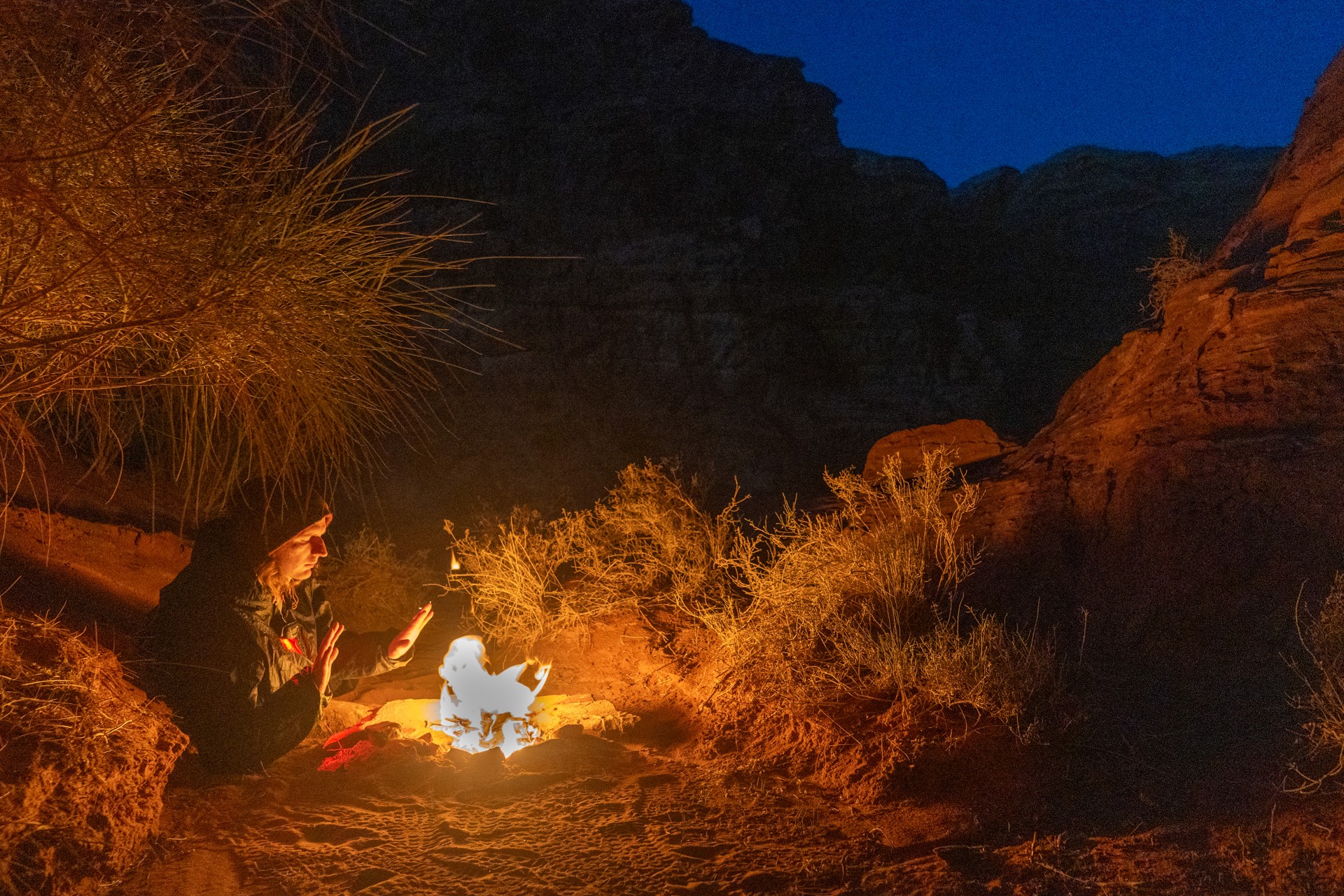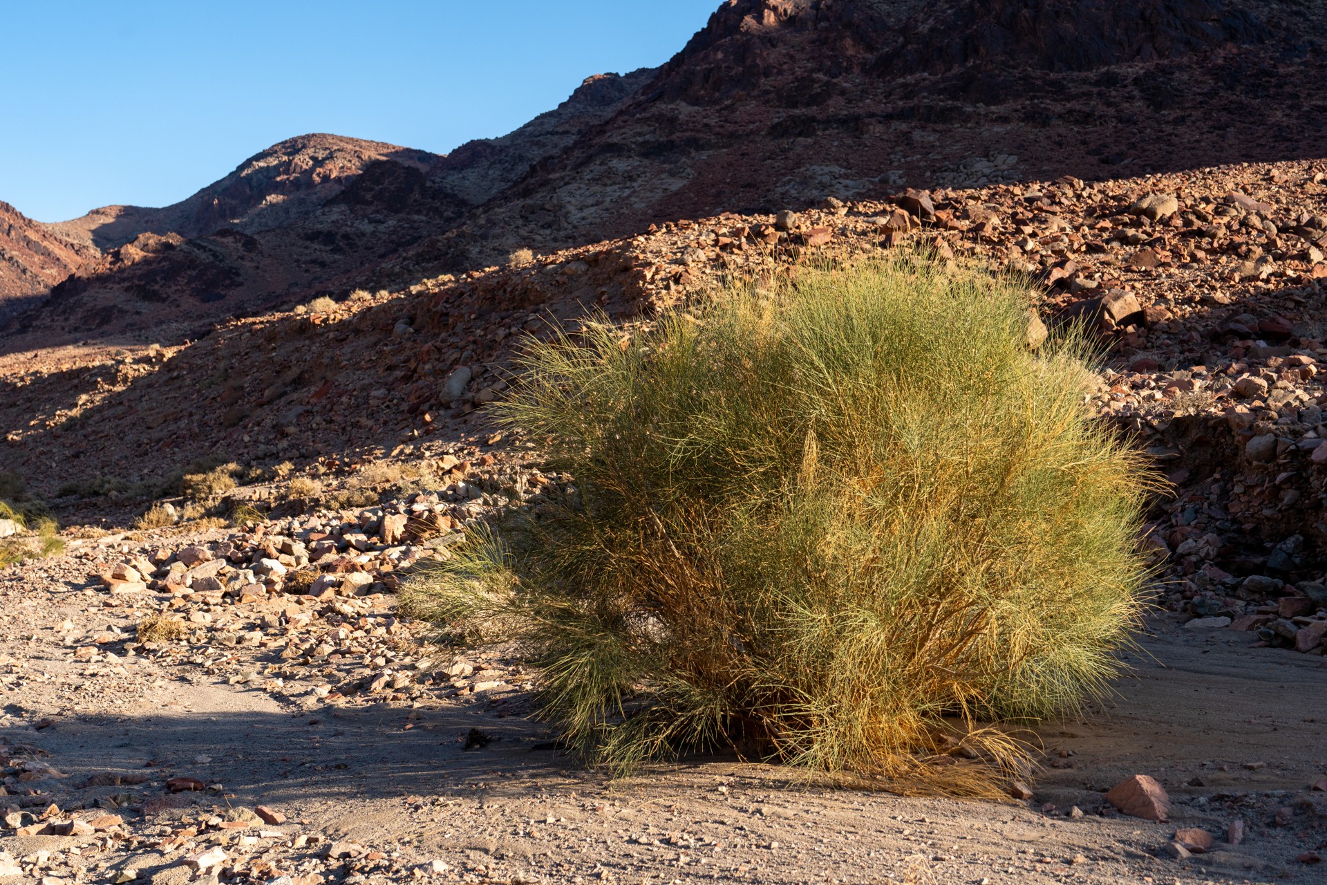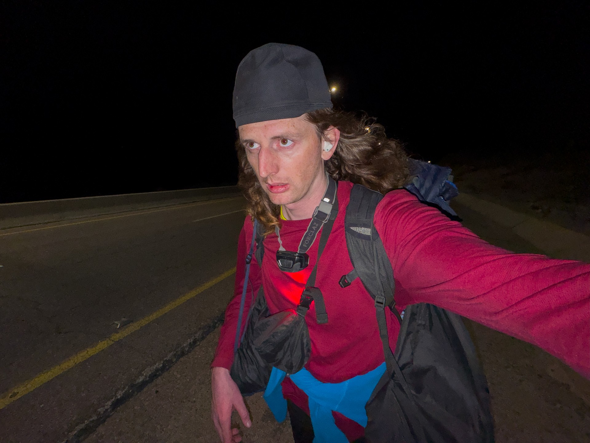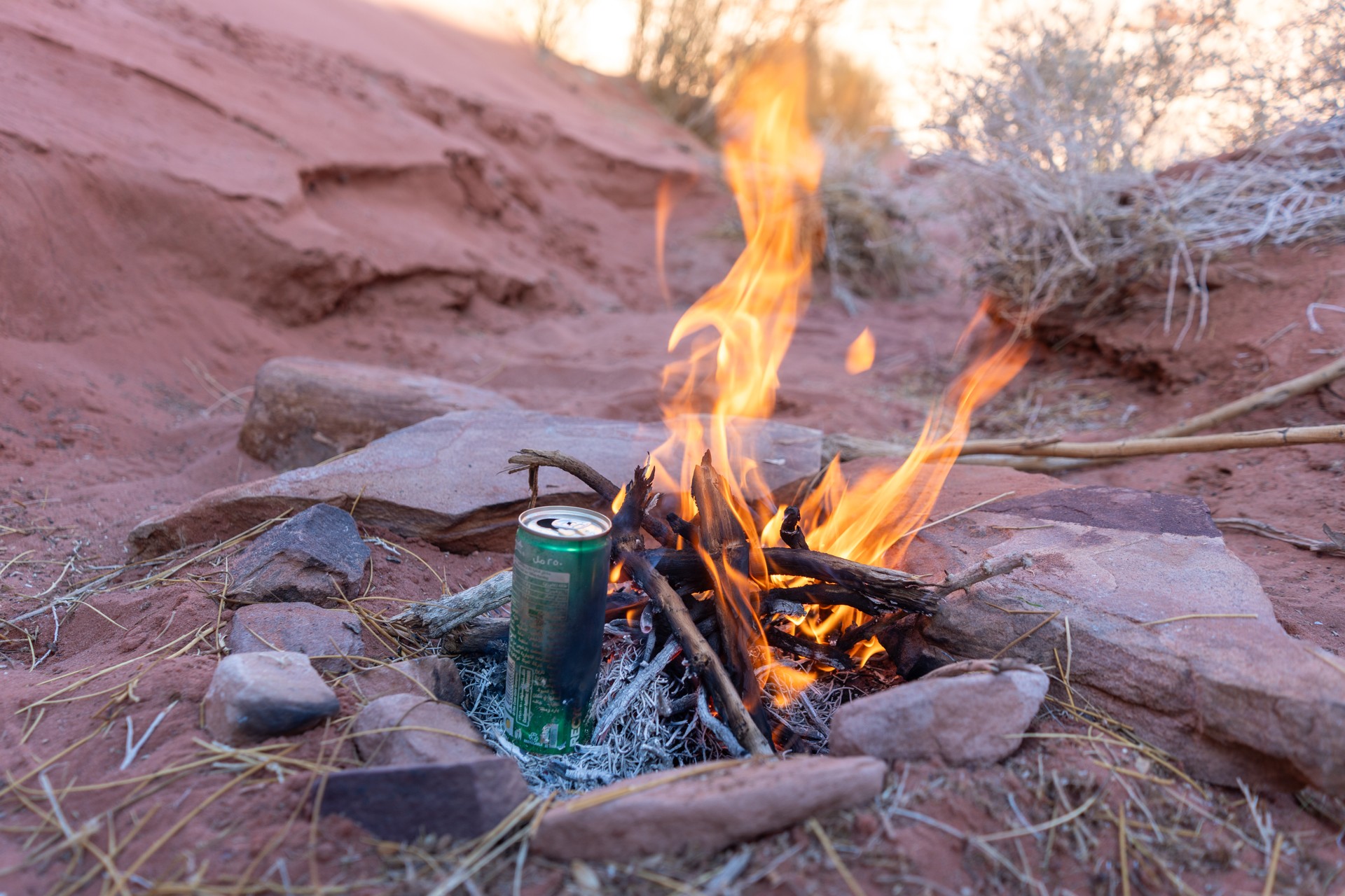 V prosinci se zde výjimečně objevily deště, které nejsou pro tuto oblast obvyklé, a díky nim bylo možné cestou nabírat vodu z kaluží na skalách. Zároveň bylo možné doplnit vodu z podzemní nádrže. I tak můj batoh s šesti litry vody, fotografickou technikou a jídlem vážil přes 20 kilo. Díky příjemnému počasí se člověk příliš nepotil, přesto bylo kvůli suchému pouštnímu vzduchu důležité dbát na pitný režim. Jako vždy se dostavil i nepříjemný pocit podrážděného nosu, kdy se při smrkání objevovala krev.