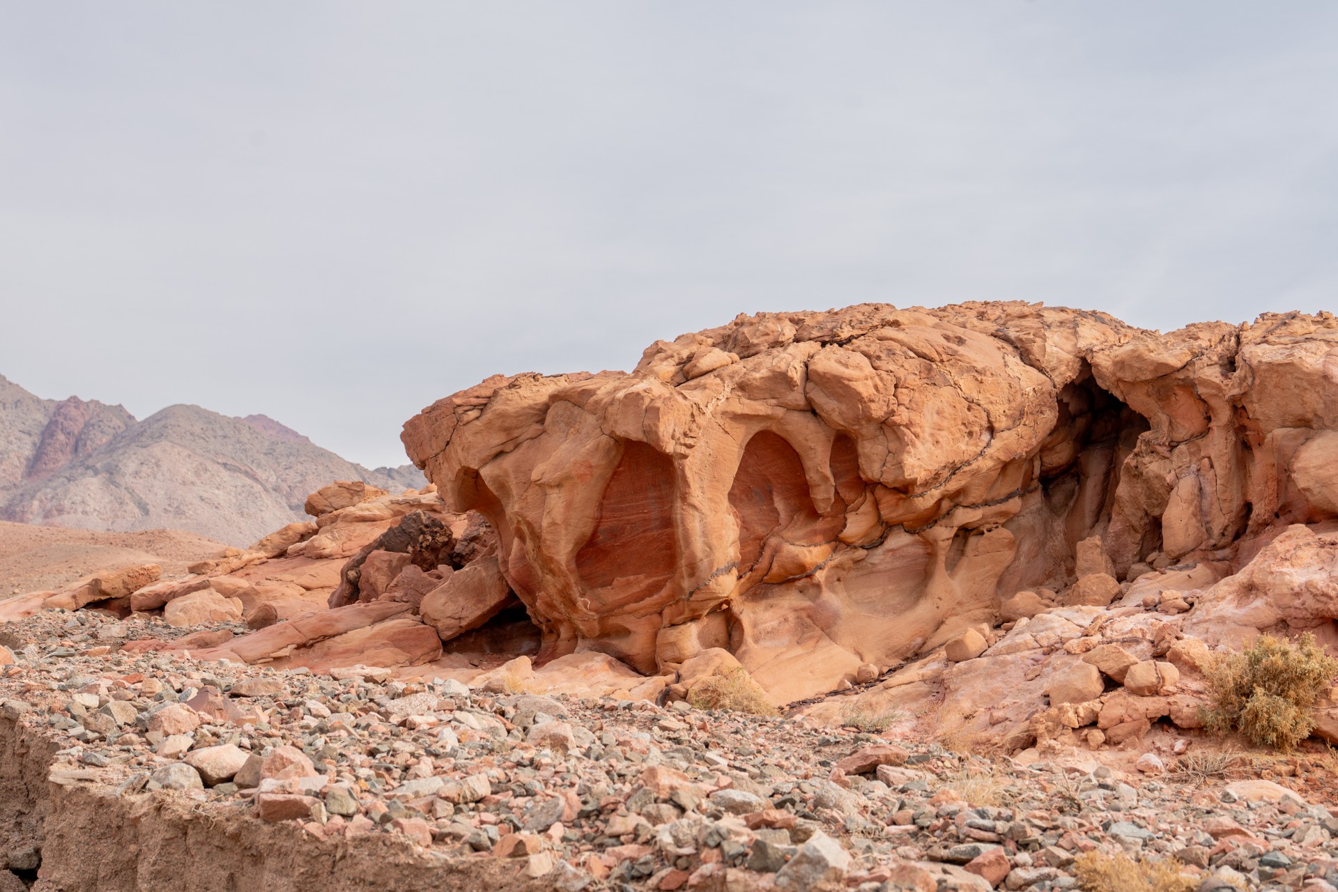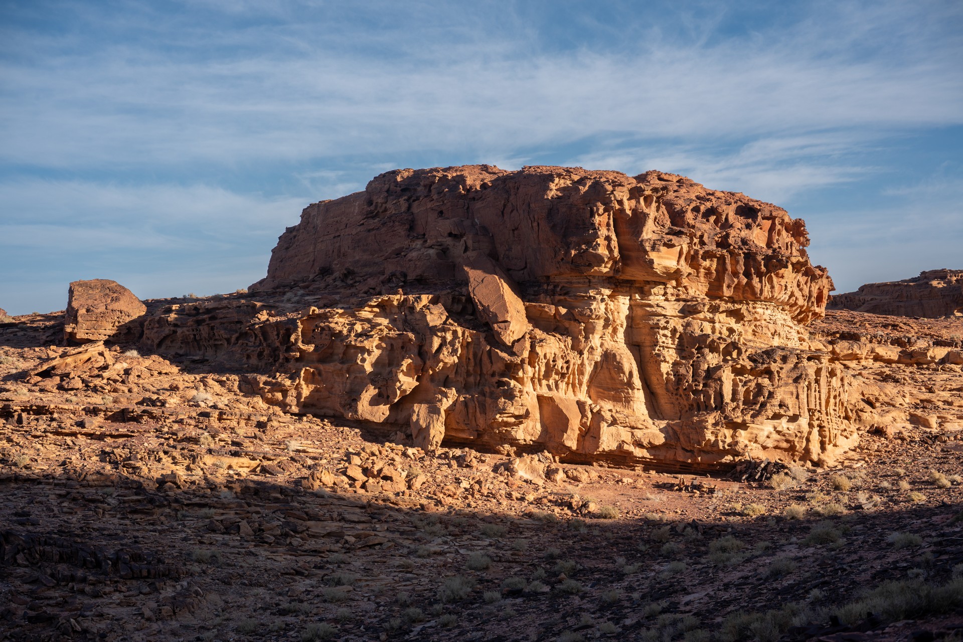 Poušť s skalnatými útvary připomínající krajinu Marsu
