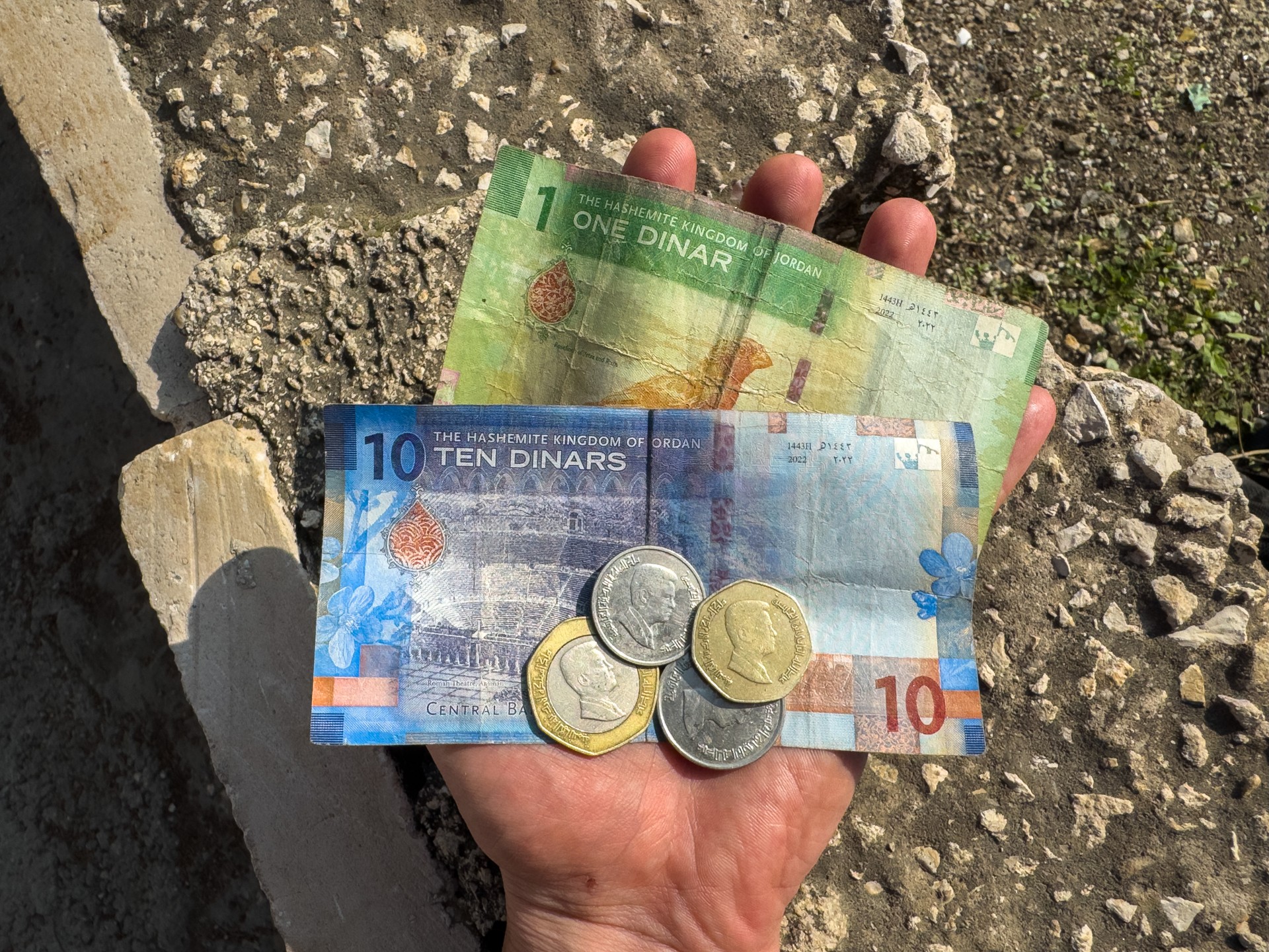 Celkové výdaje zahrnovaly 5 800 Kč za dopravu, 1 300 Kč za vízum a 75 Kč za eSIM s 1 GB dat na týden. V poušti mezi skalami samozřejmě nebyl signál; dostupný byl až ve vesnici. Na cestu autobusem a nákupy na trzích jsem si také směnil jordánské dináry.