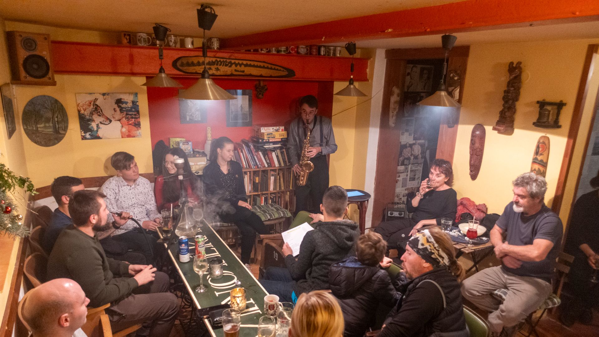 Vystoupení na saxofon s Radimem v Čajce (30.11.2023)