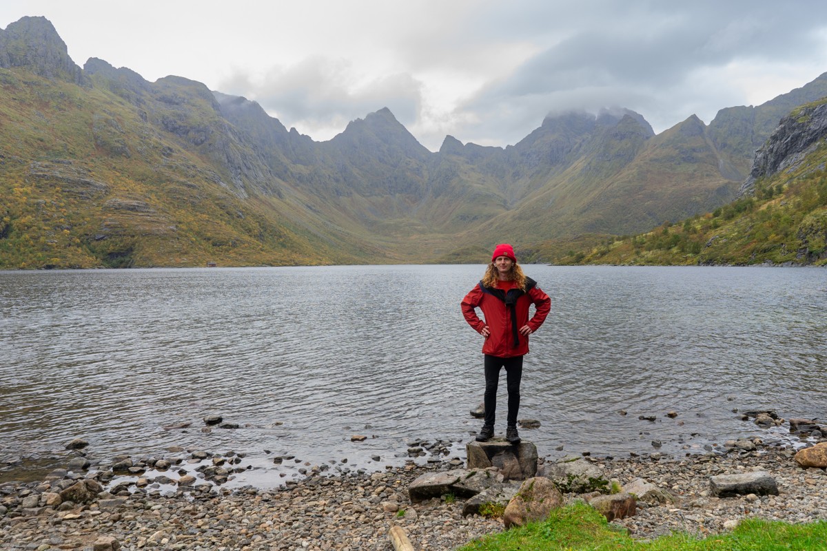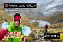 Týdenní výprava na souostroví Lofoty na severu Norska koncem září roku 2023. Během pobytu intenzivně pršelo a foukal vítr až 20 m/s. Plánoval jsem si kratší trasy pěšky a celkově nachodil kolem 70 km s nocováním v řadě turistických přístřešcích, abych zůstal v suchu, ale mé boty byly po celou dobu mokré přecházením i přes močály. S teplotami kolem 10°C v pohybu nebyla zima díky teplým větrům od moře. Cesta vedla 15 hodin vlakem do Gdaňsku, 2 hodiny let do Trondheimu, 10 hodin vlak do Bodø, 3 hodiny trajekt do Moskenes a zpět. S rozpočtem za dopravu jsem se vešel do 6000 Kč.